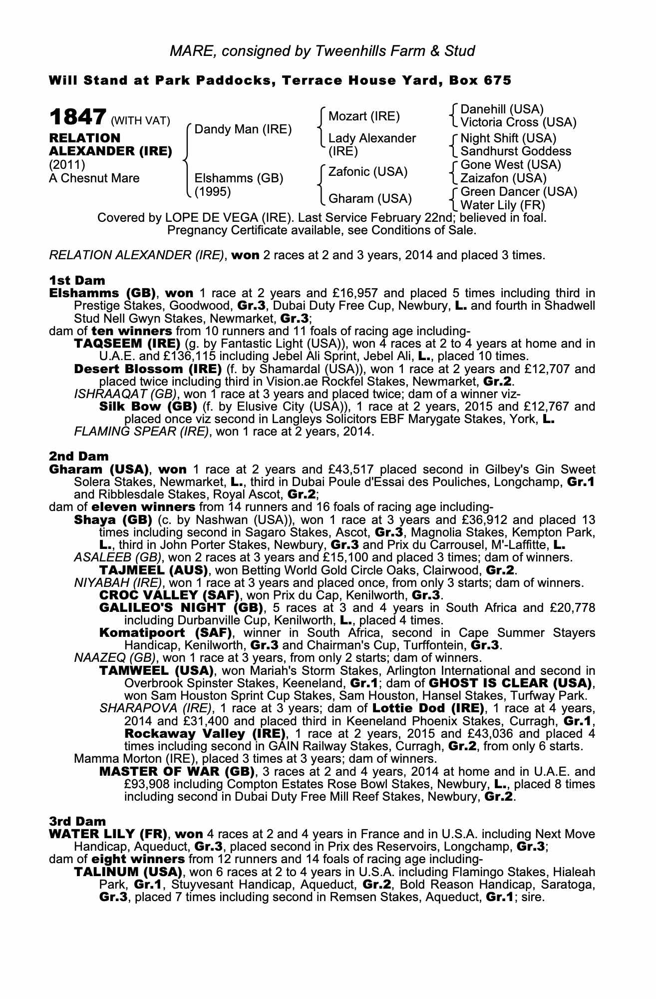 October Yearling Sale, Book 2 2020 lot 1143 F. by Dark Angel (IRE) 2019, Yeomanstown Stud, Ireland=>Shadwell Estate Company 145,000 gns