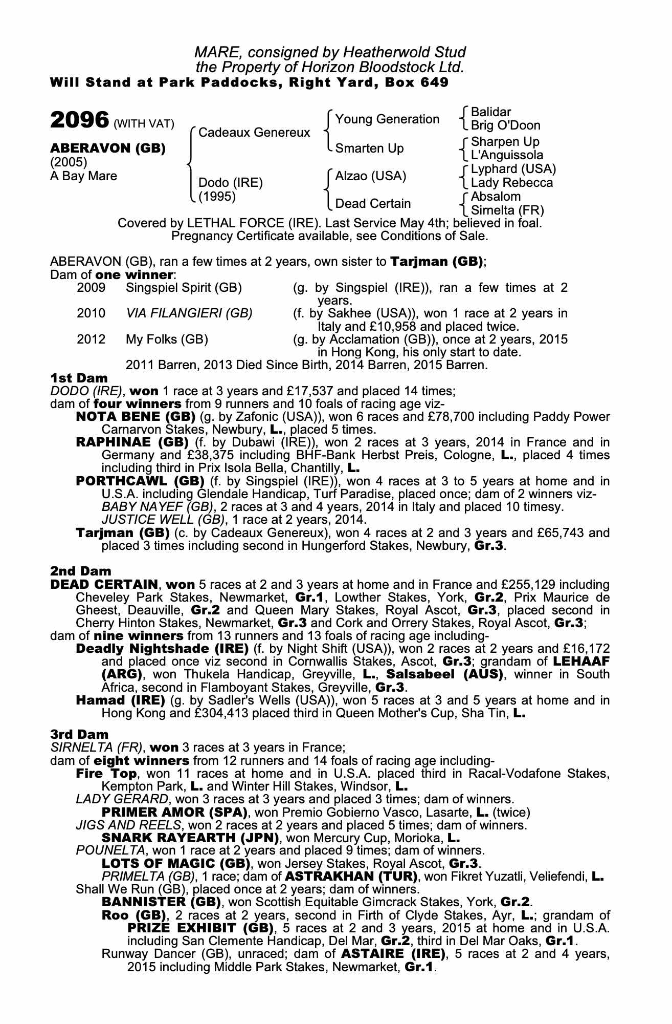 October Yearling Sale 2001 lot 829 C. , Usk Valley Stud=>A Skiffington 190,000 gns