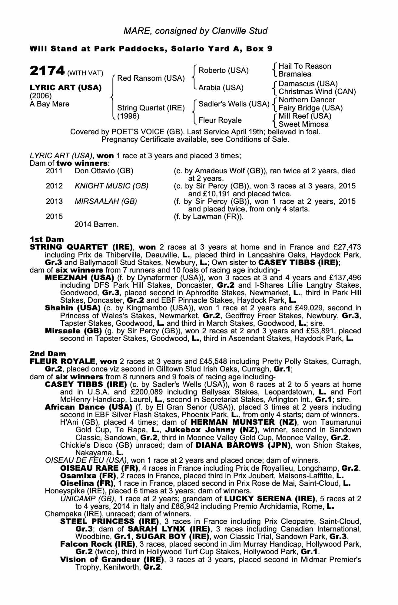 Consignor: Clanville Stud