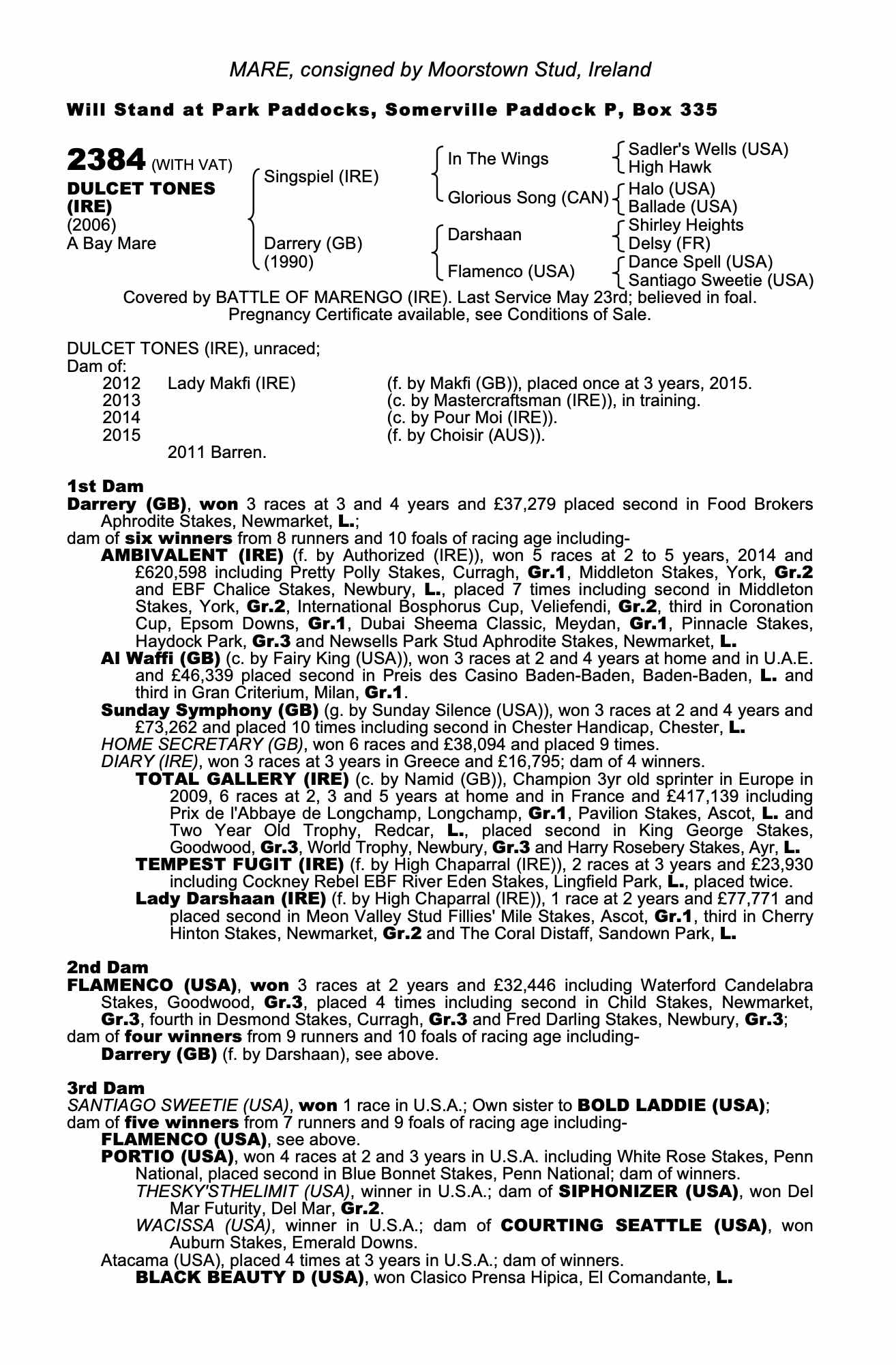 Consignor: Moorstown Stud, Ireland