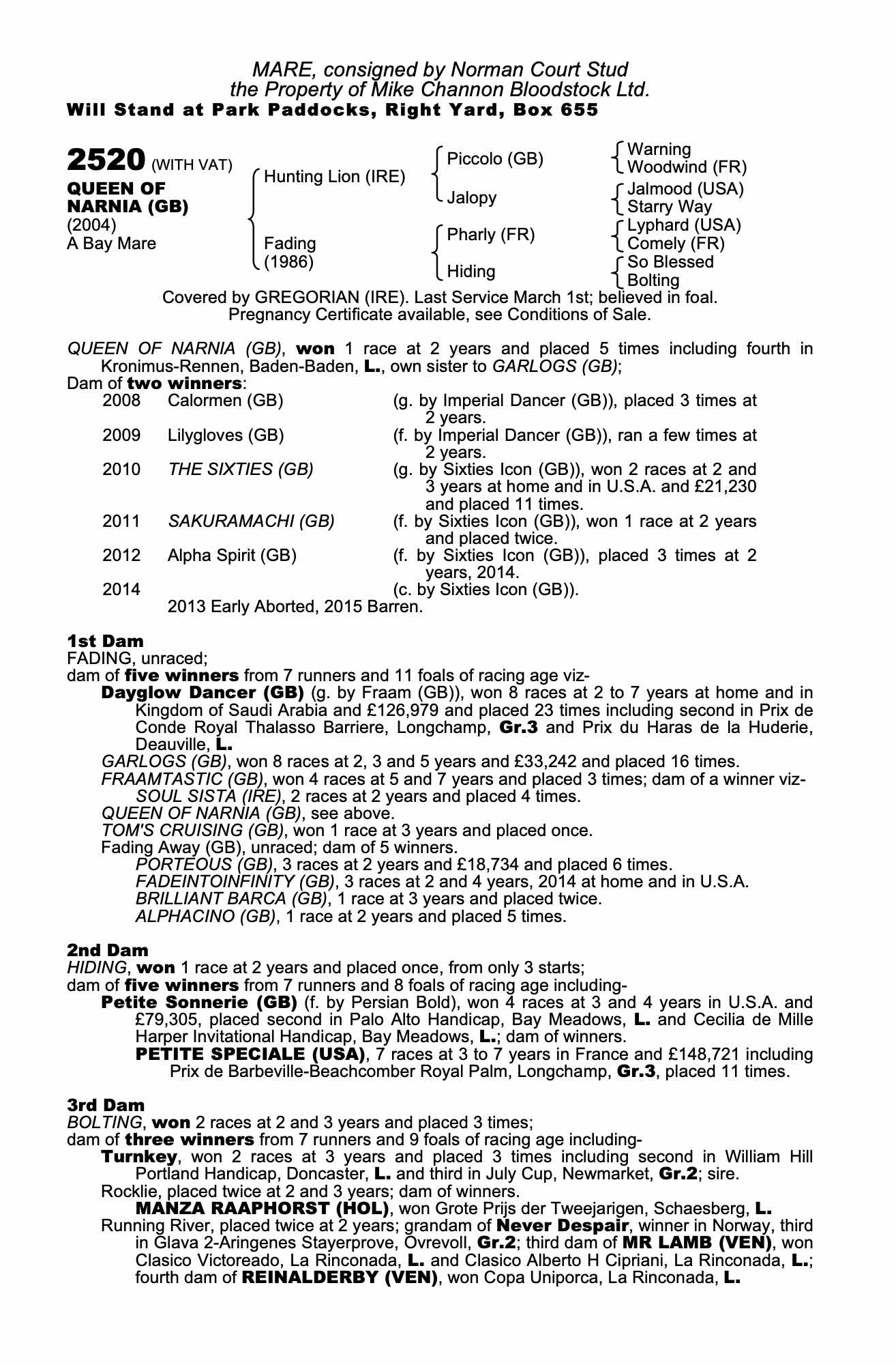 December Mare Sale 2007 lot 2854 Fading Away (GB) (M. by Fraam (GB)), Norman Court Stud=>Lot Not Sold