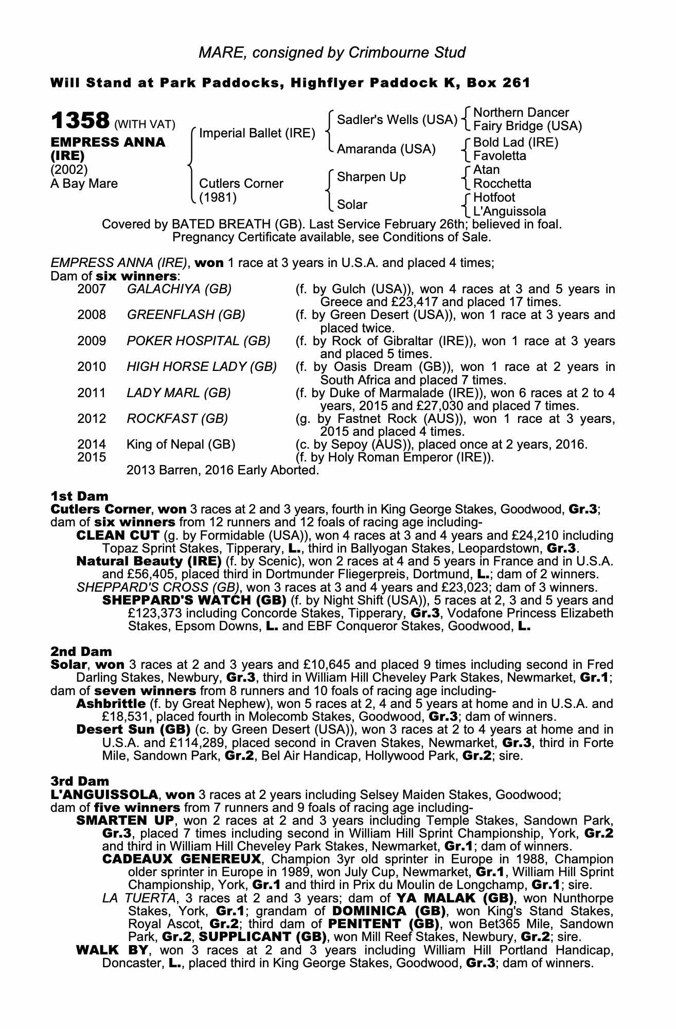 December Mare Sale 2004 lot 1436 Sheppard's Cross (GB) (M. by Soviet Star (USA)), Stowell Hill Stud=>John Warren Bloodstock 100,000 gns