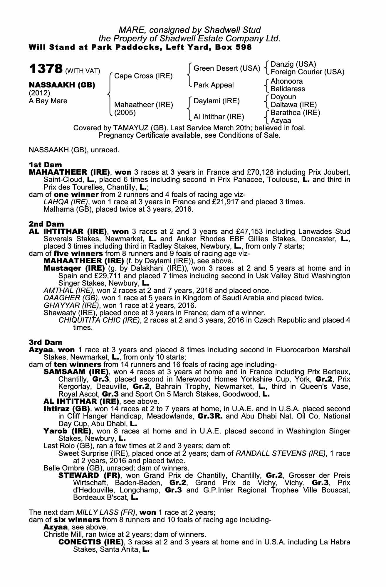 December Mare Sale 2019 lot 2260 Malhama (GB) (M. by New Approach (IRE)), Charlock Stud=>Mostafa MA El-Bakkoush 800 gns