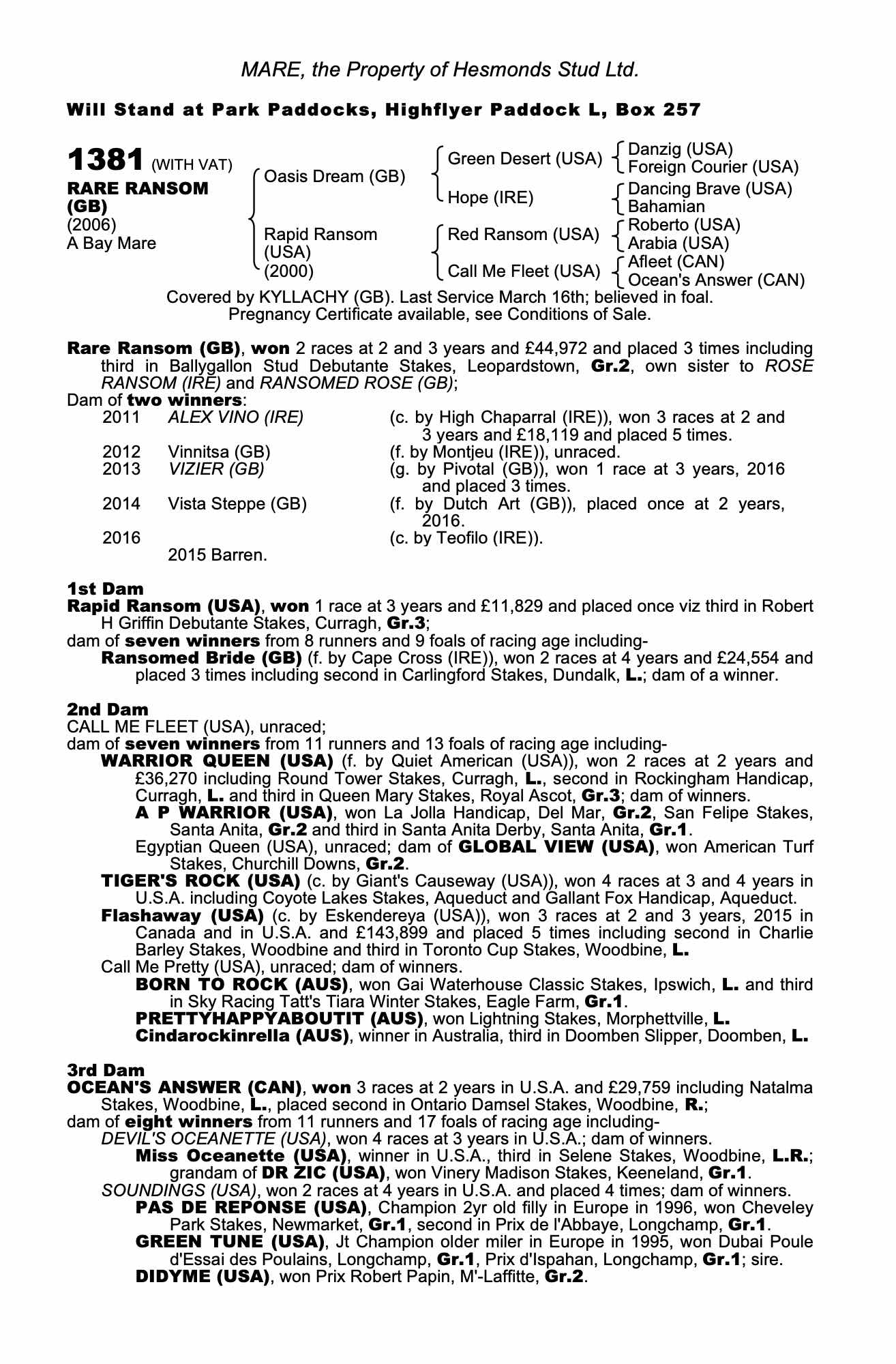 December Mare Sale 2025 lot 1781 Vista Steppe (GB) (M. by Dutch Art (GB)), Annshoon Stud, Ireland (Agent)=>Lot Not Sold
