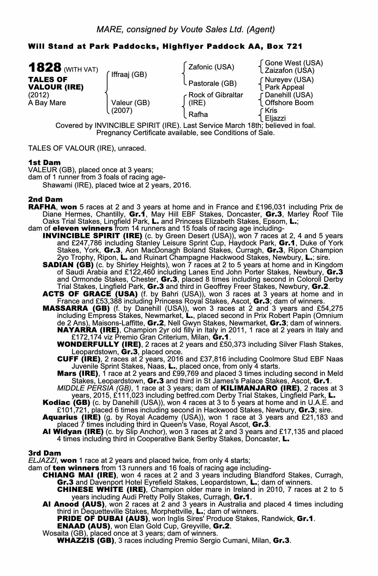 Consignor: Voute Sales Ltd. (Agent)