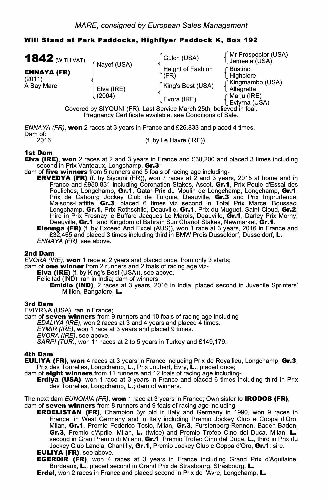 December Mare Sale 2018 lot 1729 Elayouna (FR) (M. by Dr Fong (USA)), HSV Agency, France=>Lot Not Sold 70,000 gns