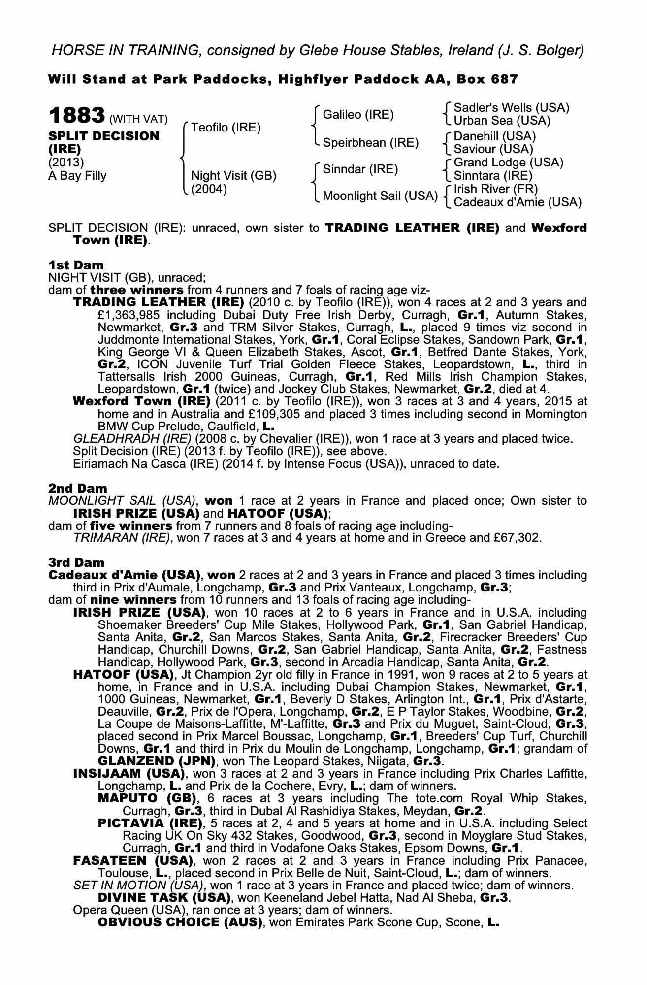 Consignor: Glebe House Stables, Ireland (J. S. Bolger)