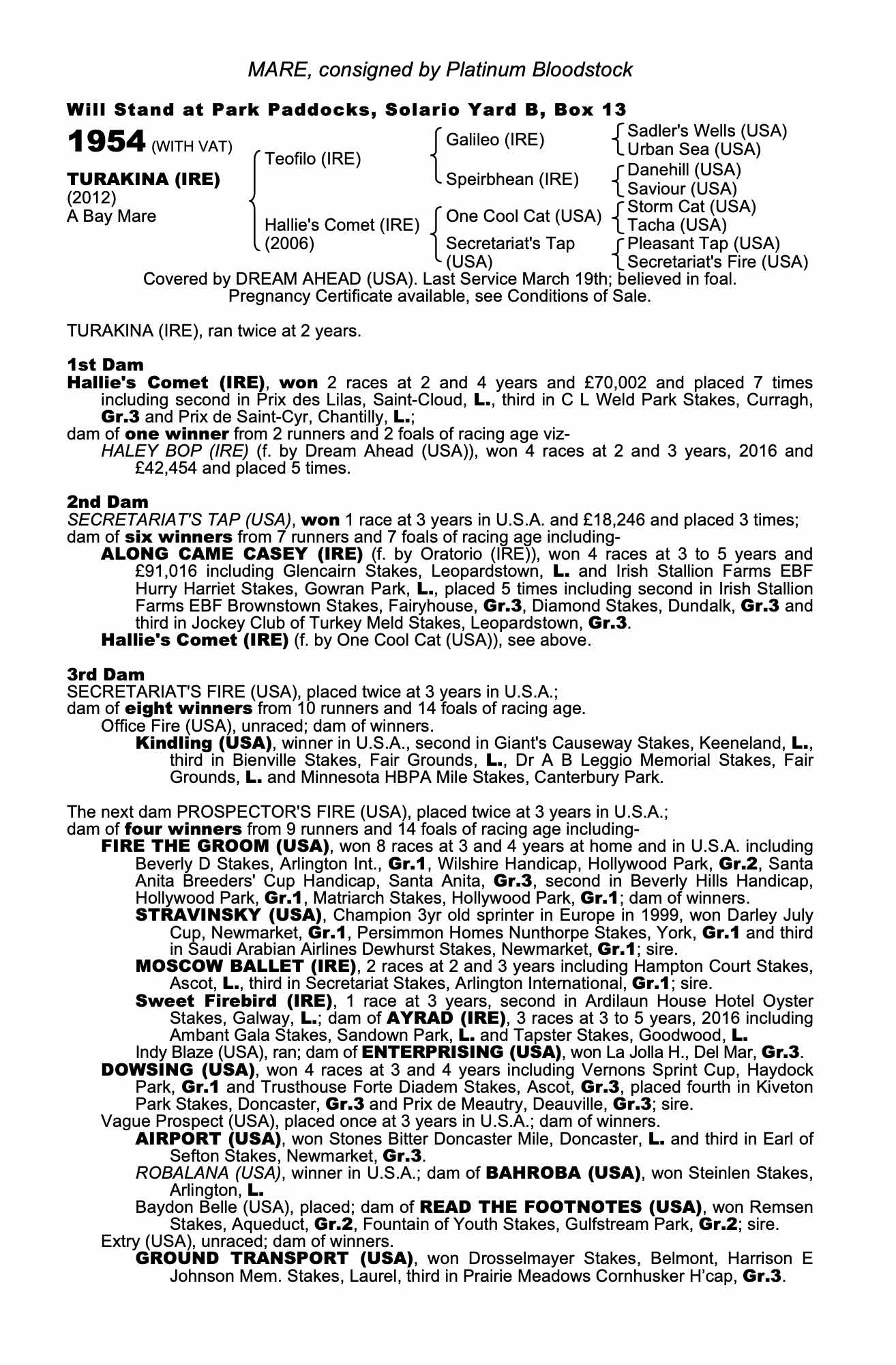Consignor: Platinum Bloodstock