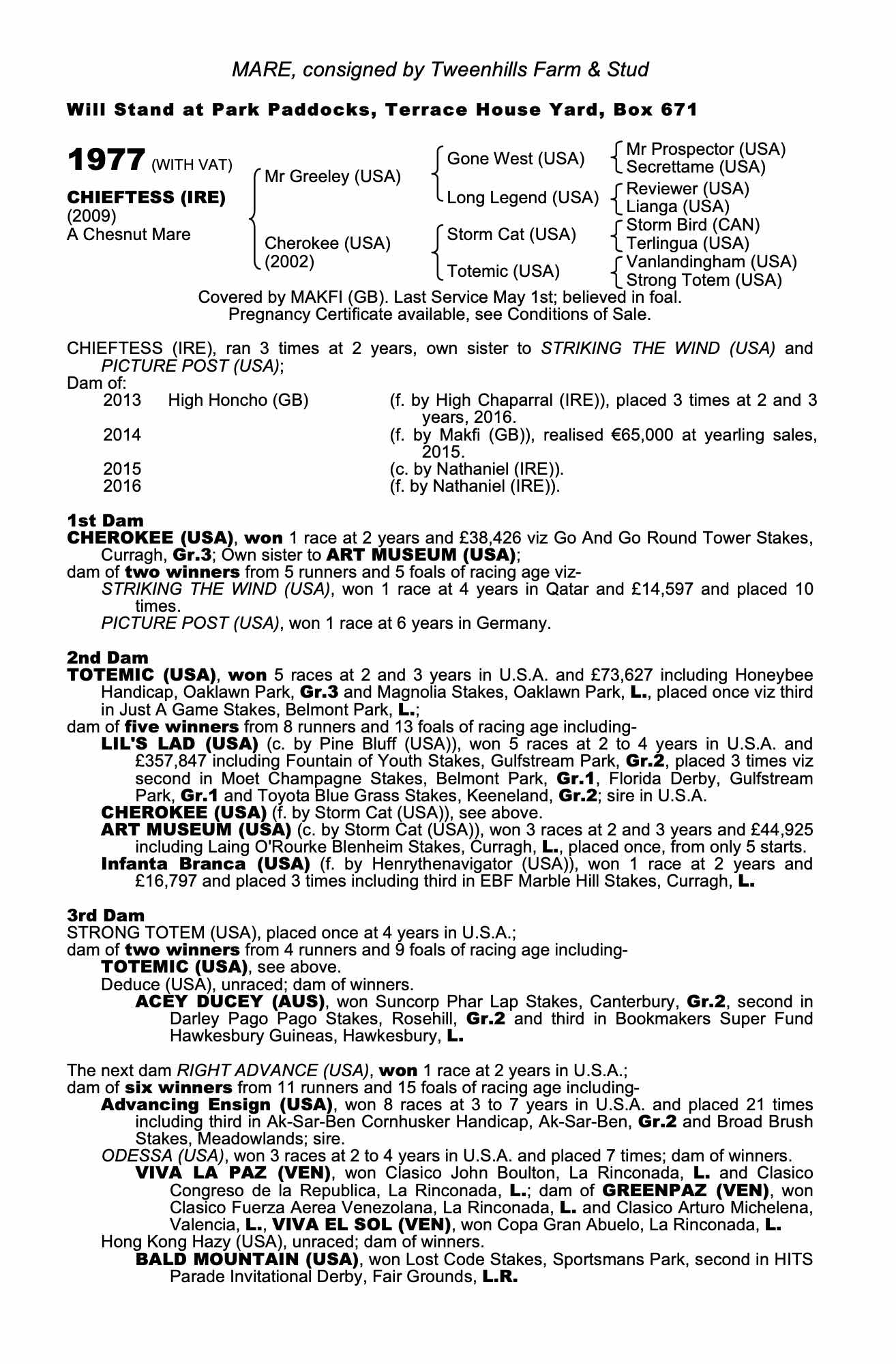 Flat Foal & Breeding Stock Sale 2018 lot 205 High Honcho (GB) (M. by High Chaparral (IRE)), Mr. Christy Tully=>Lot Not Sold €13,500