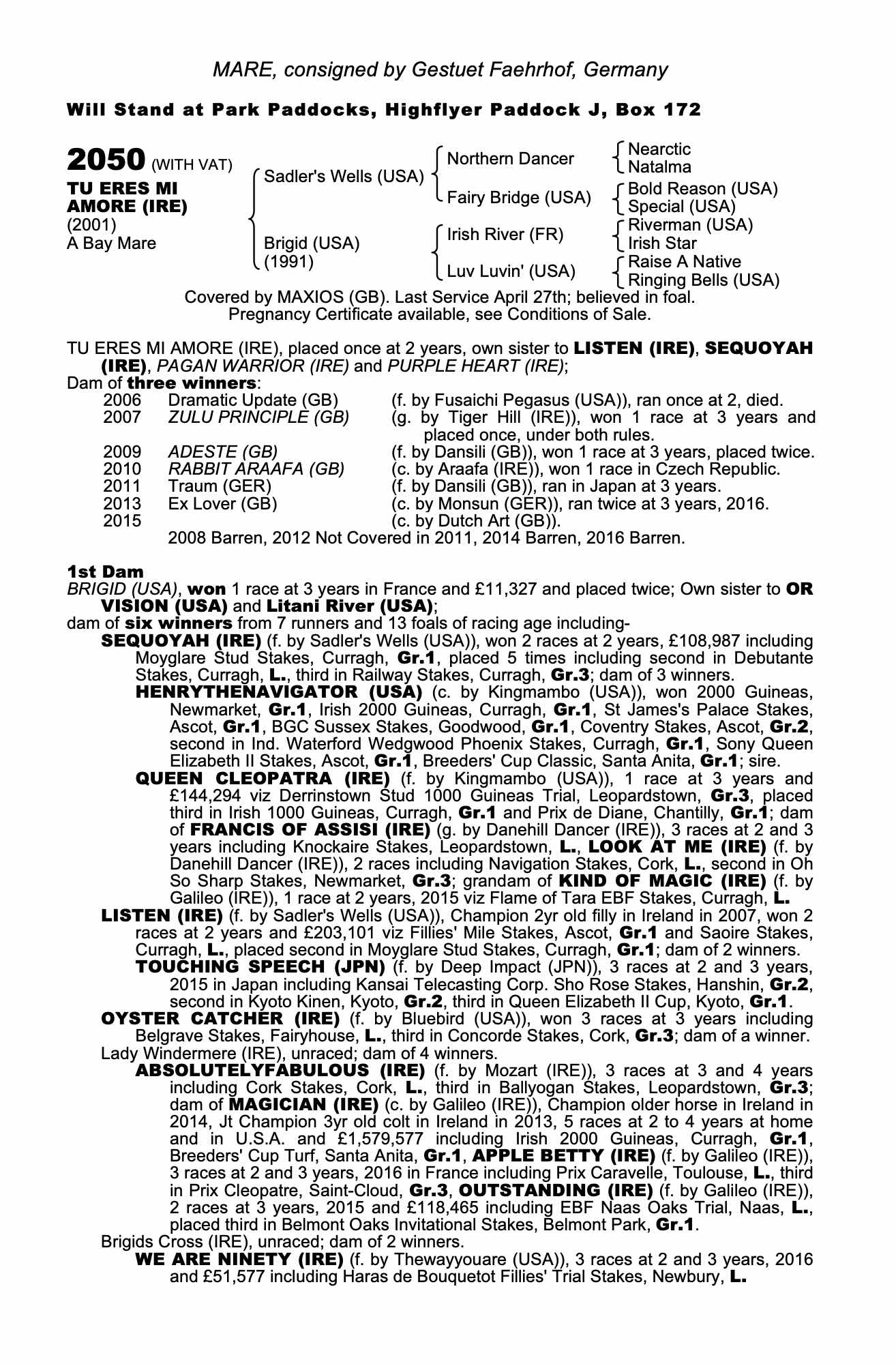 Houghton Yearling Sale 2003 lot 105 F. 2002, Oaks Farm Stables=>BBA Ireland 750,000 gns