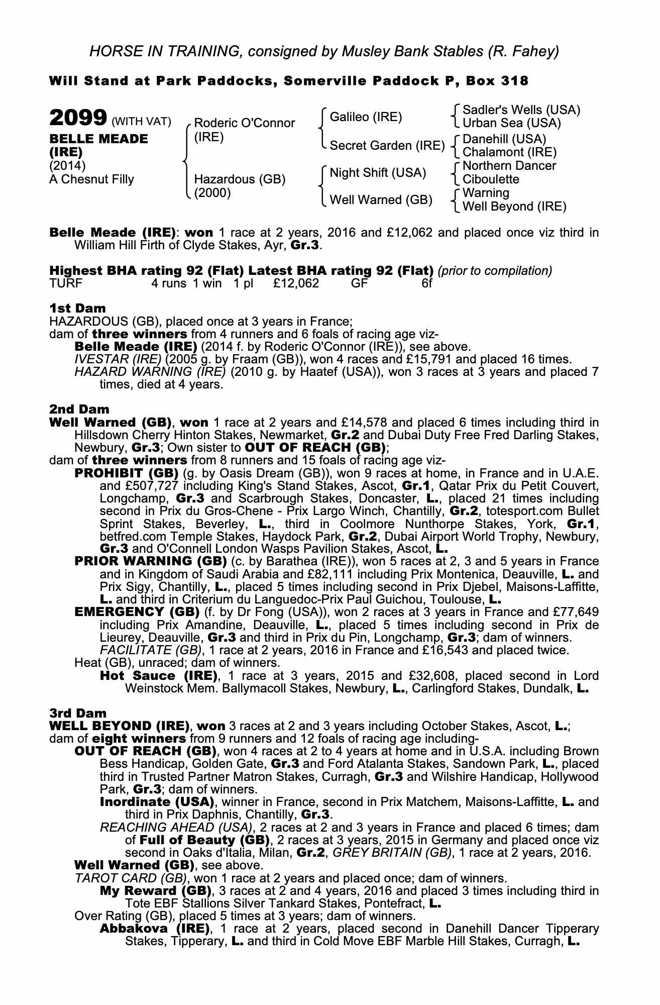 Consignor: Musley Bank Stables (R. Fahey)