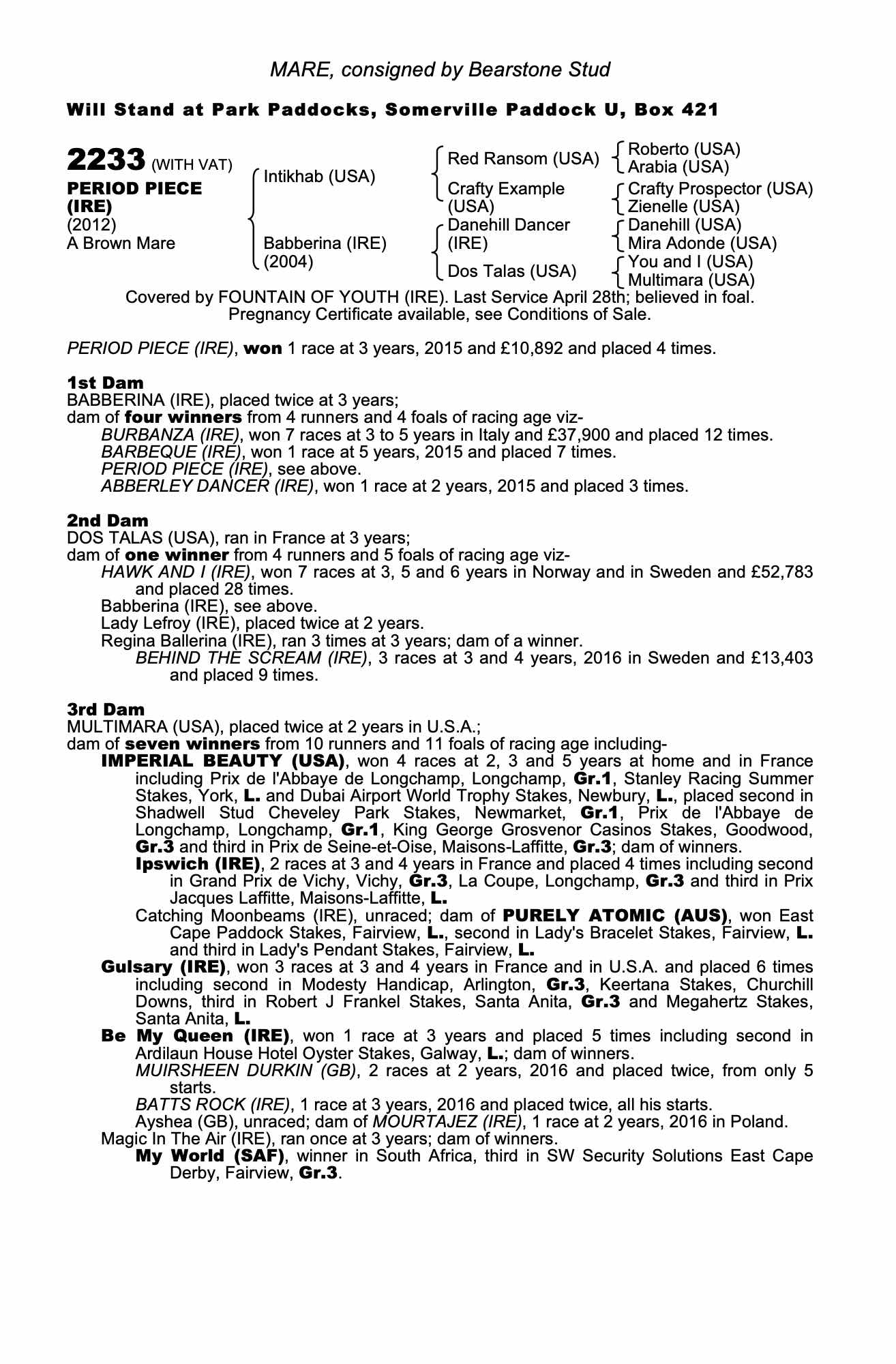 Consignor: Bearstone Stud