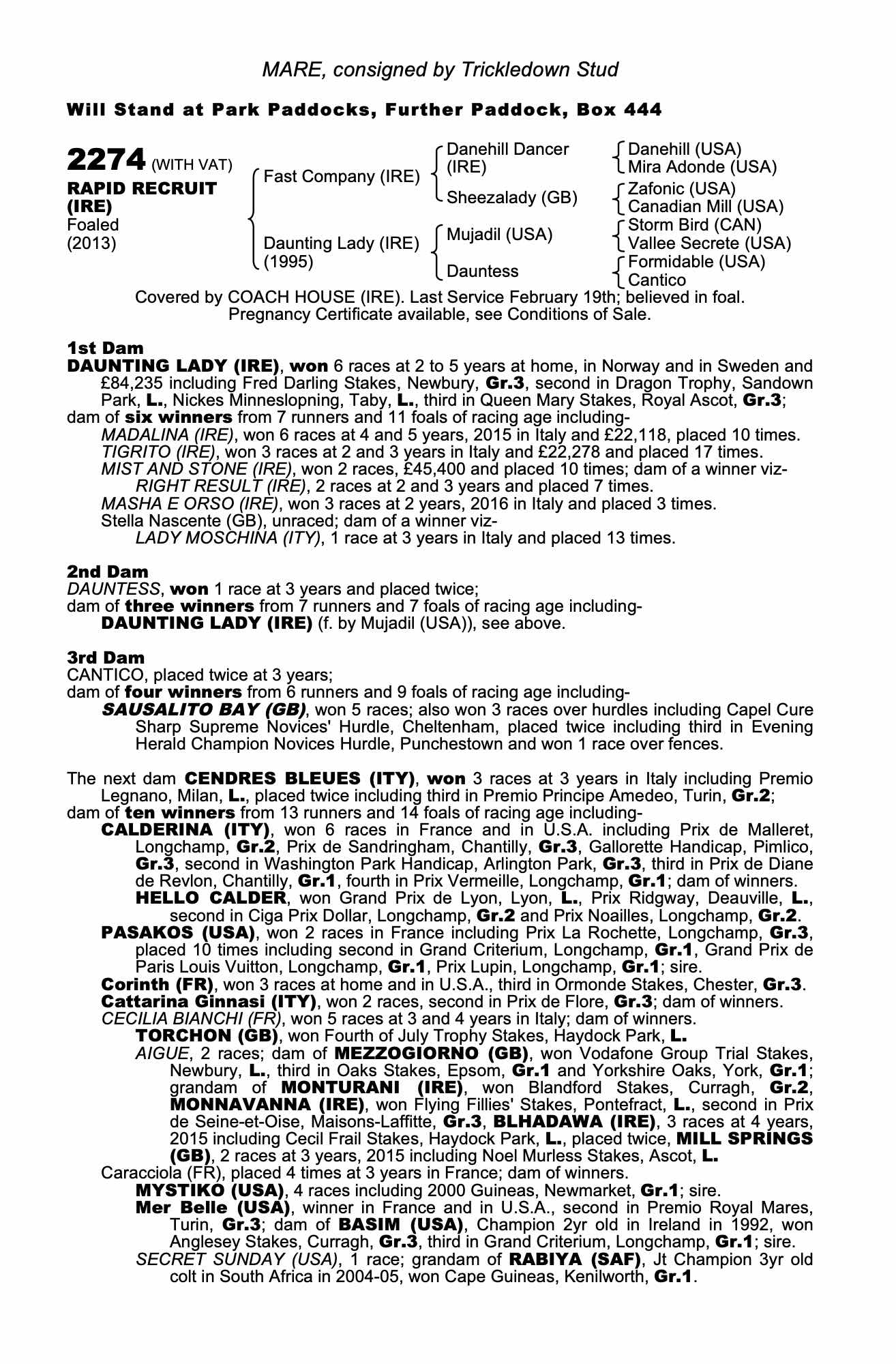 Breeders Flat Sale 2003 lot 165 F. by Mark of Esteem (IRE) 2002, Bansha House Stables=>Trovato Salvatorve €8,500
