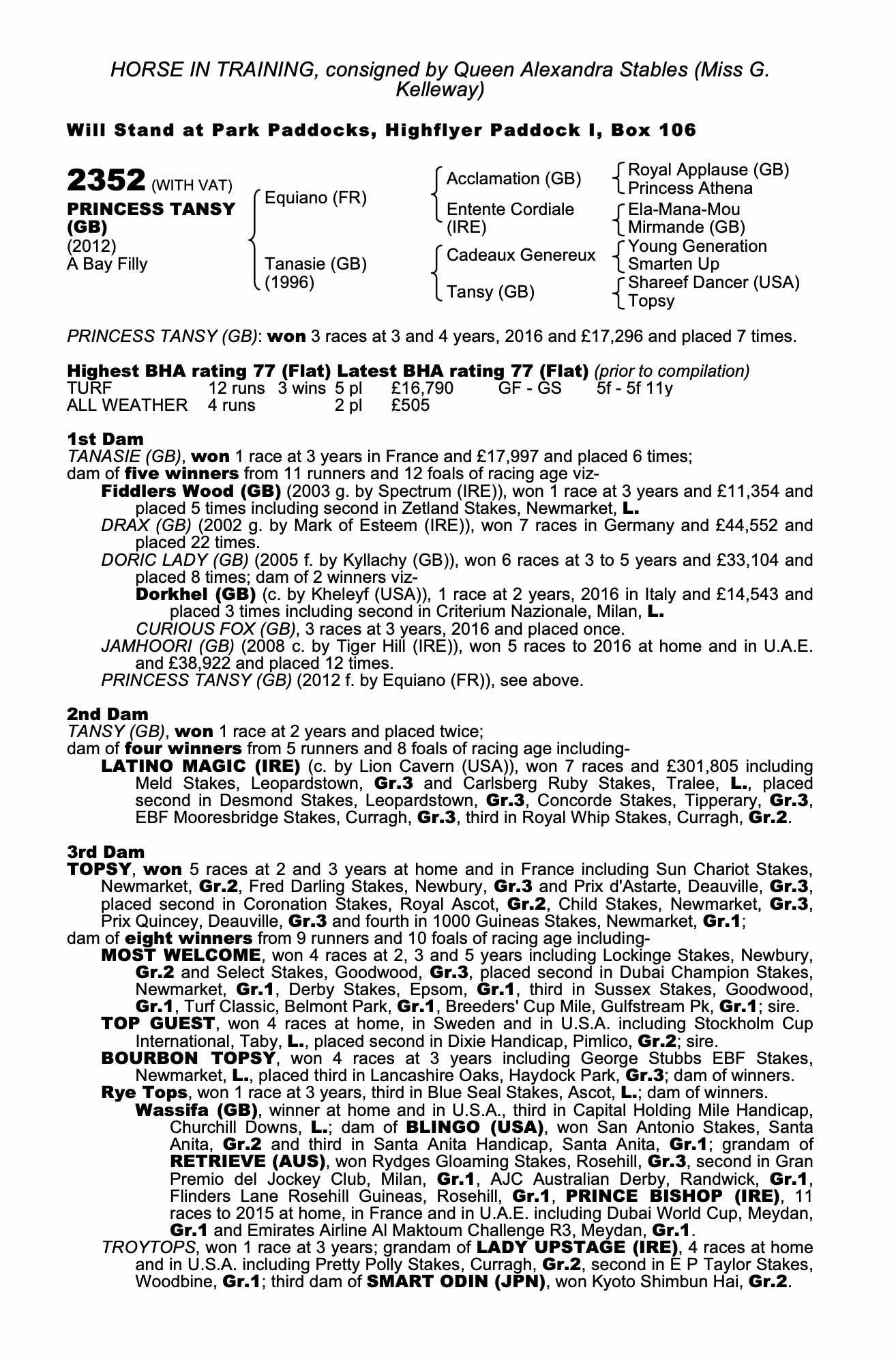 Consignor: Queen Alexandra Stables (Miss G. Kelleway)