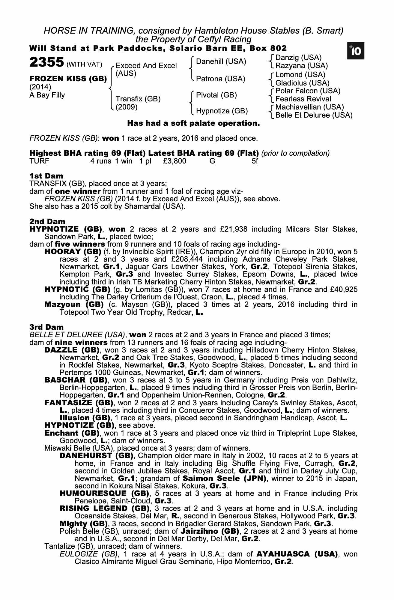 Consignor: Hambleton House Stables (B. Smart)