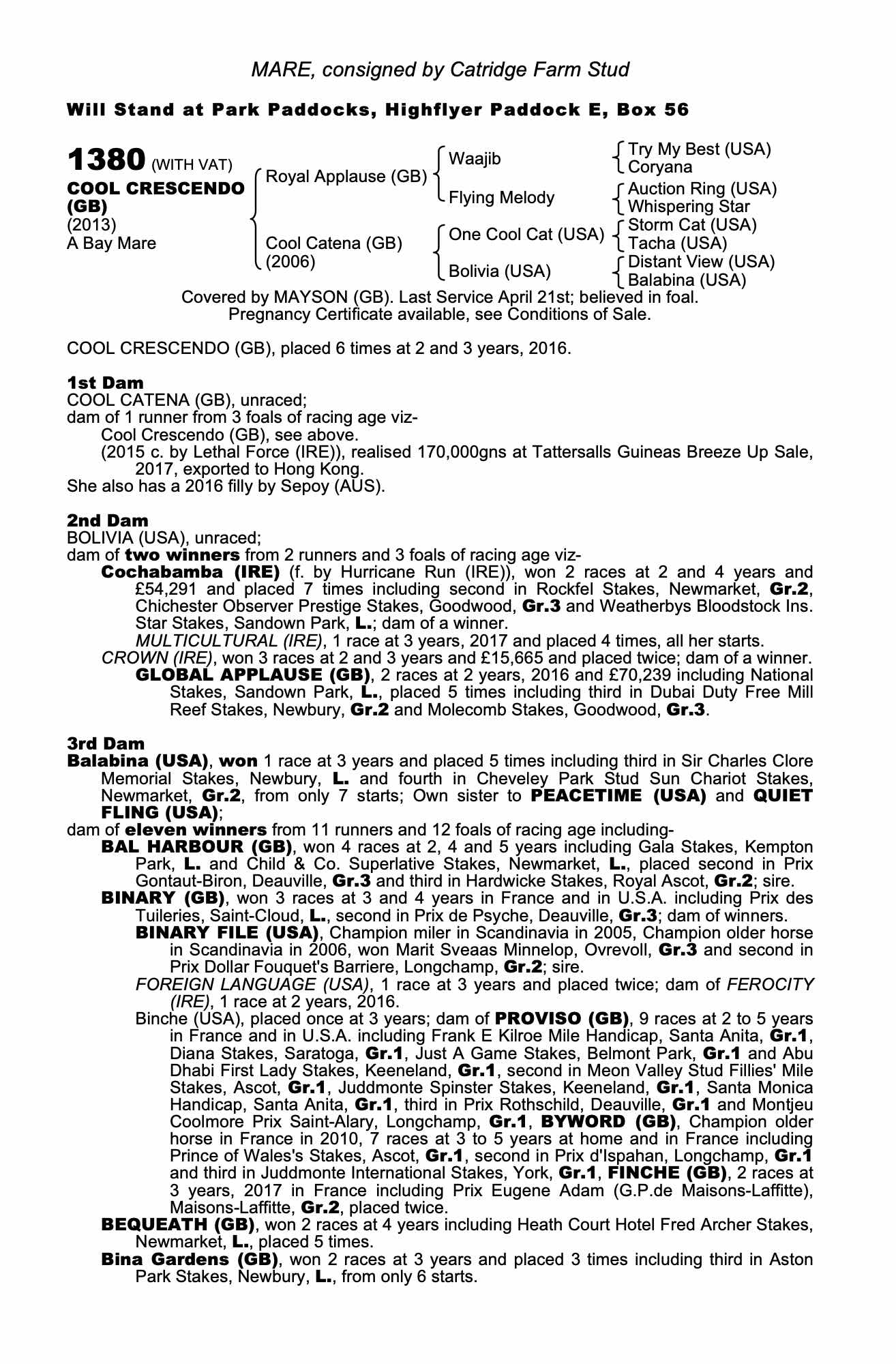 Consignor: Catridge Farm Stud