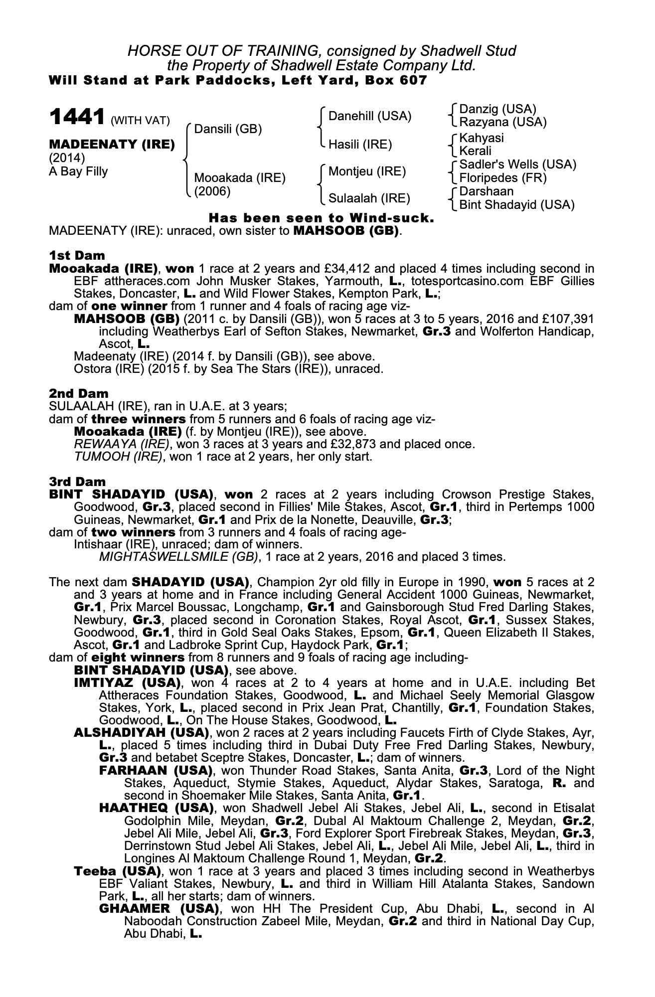 December Mare Sale 2020 lot 1200 Moqla (GB) (M. by Teofilo (IRE)), Shadwell Stud=>Primera Bloodstock 5,000 gns