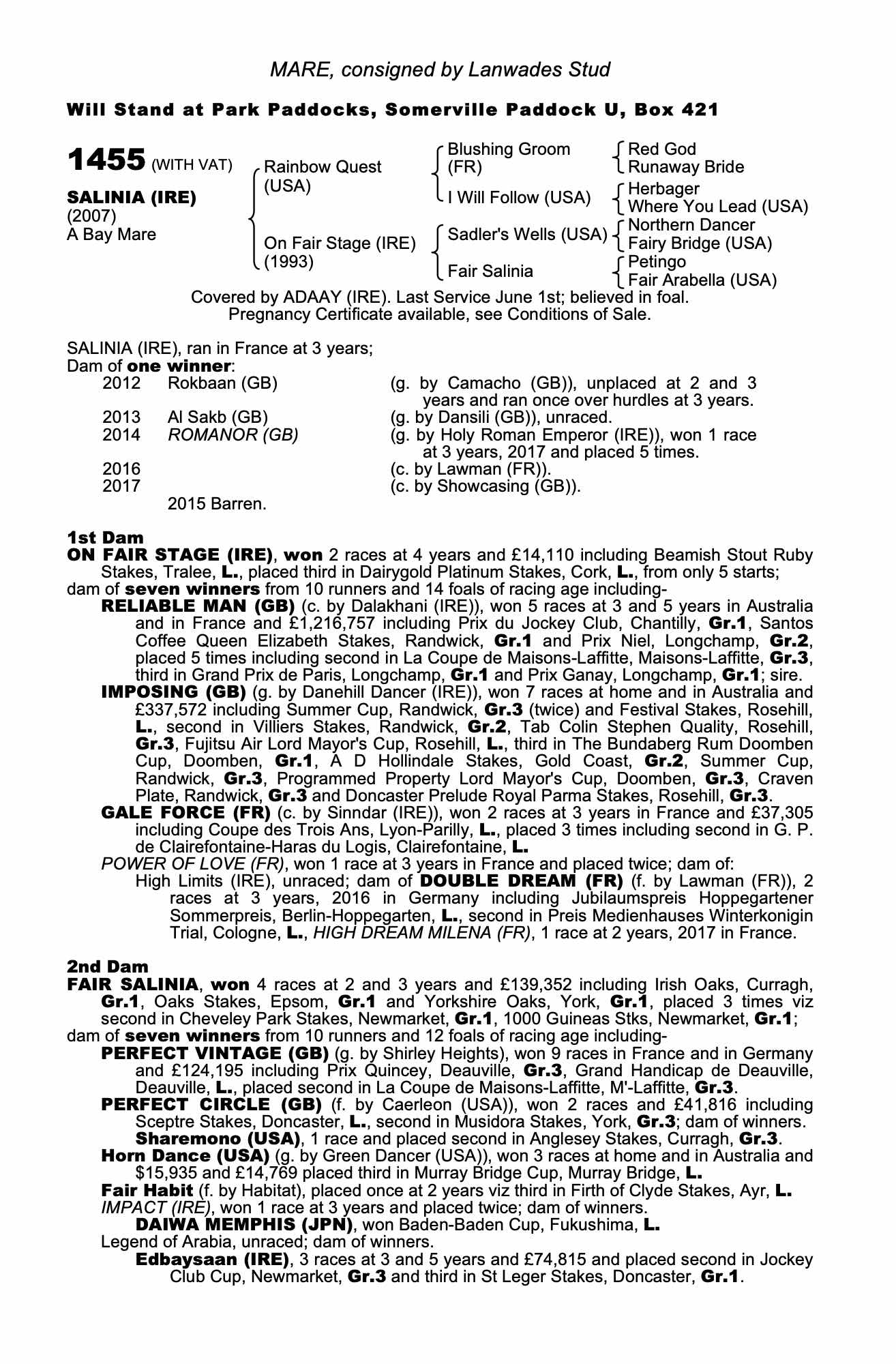 December Mare Sale 2010 lot 1555, Ballylinch Stud, Ireland (Agent)=>Lot Not Sold 11,500 gns