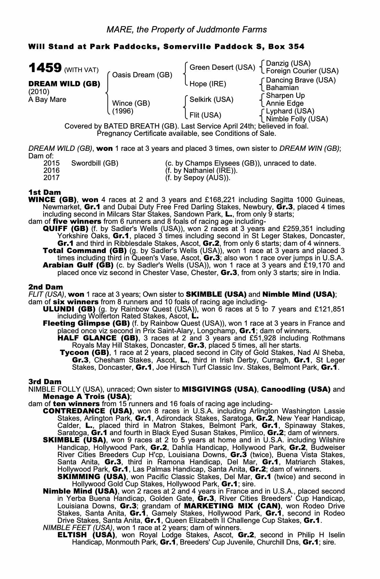December Mare Sale 2016 lot 1734 Quiff (GB) (M. by Sadler's Wells (USA)), Juddmonte Farms=>Rosemont Stud 40,000 gns