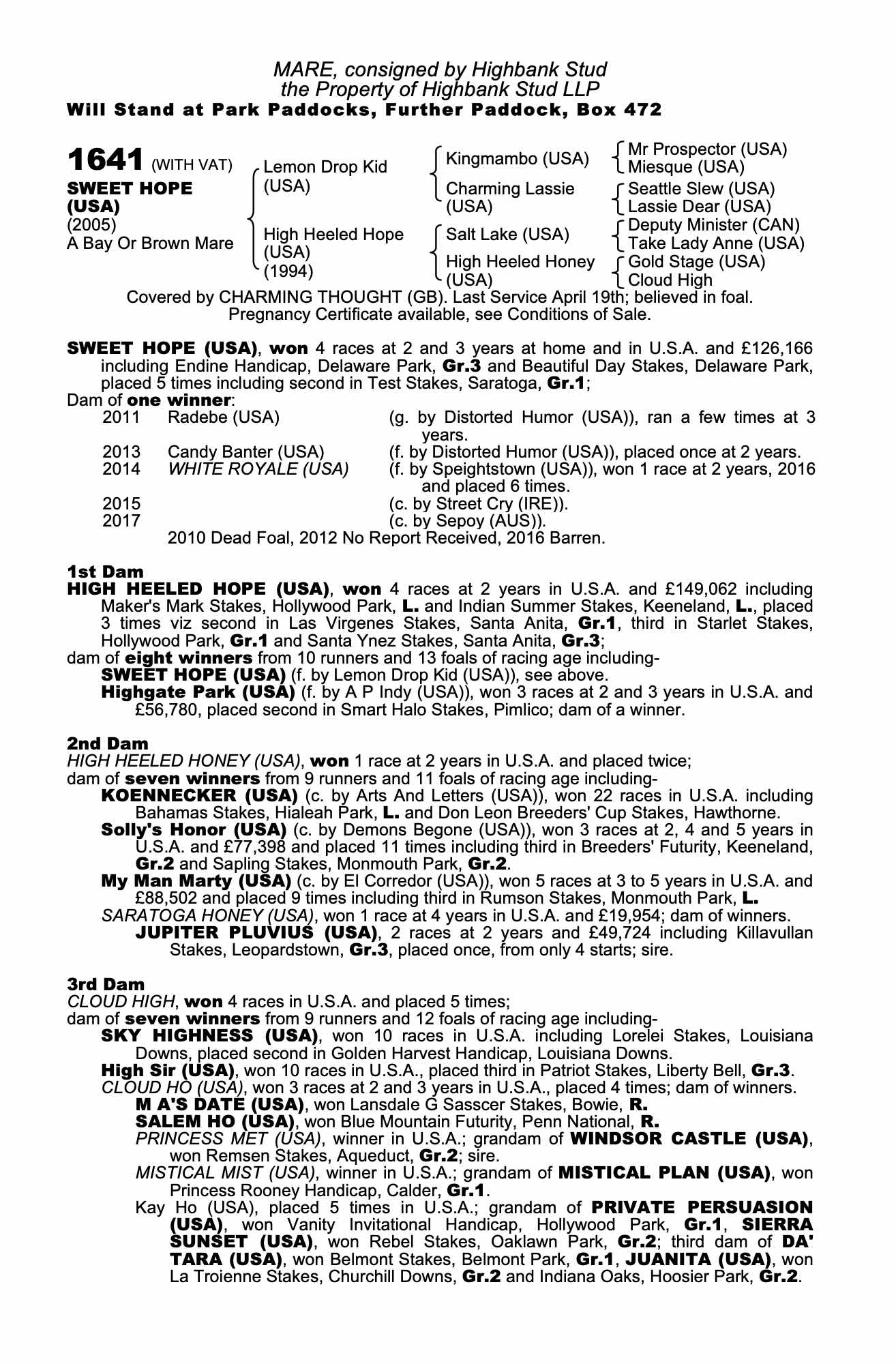 December Mare Sale 2021 lot 2217 Jacaranda Lady (USA) (F. by Gio Ponti (USA)), Jamie Railton (Agent)=>Avenue Bloodstock / Taylor Made Sales 22,000 gns