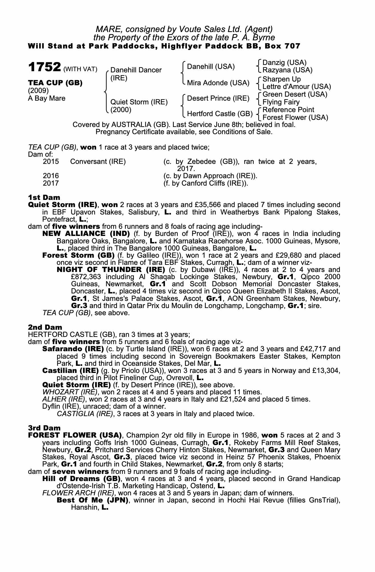 Consignor: Voute Sales Ltd. (Agent)