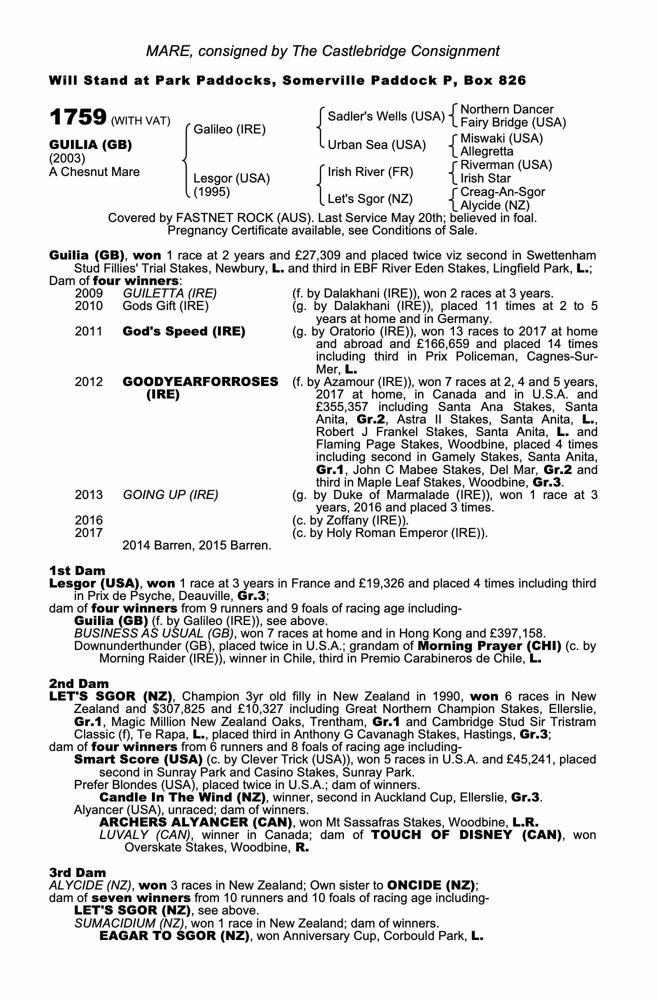 December Mare Sale 2003 lot 1723 Lavinia's Grace (USA) (F. by Green Desert (USA)), Old Mill Stud=>Hammarsfield Bloodstock 28,000 gns