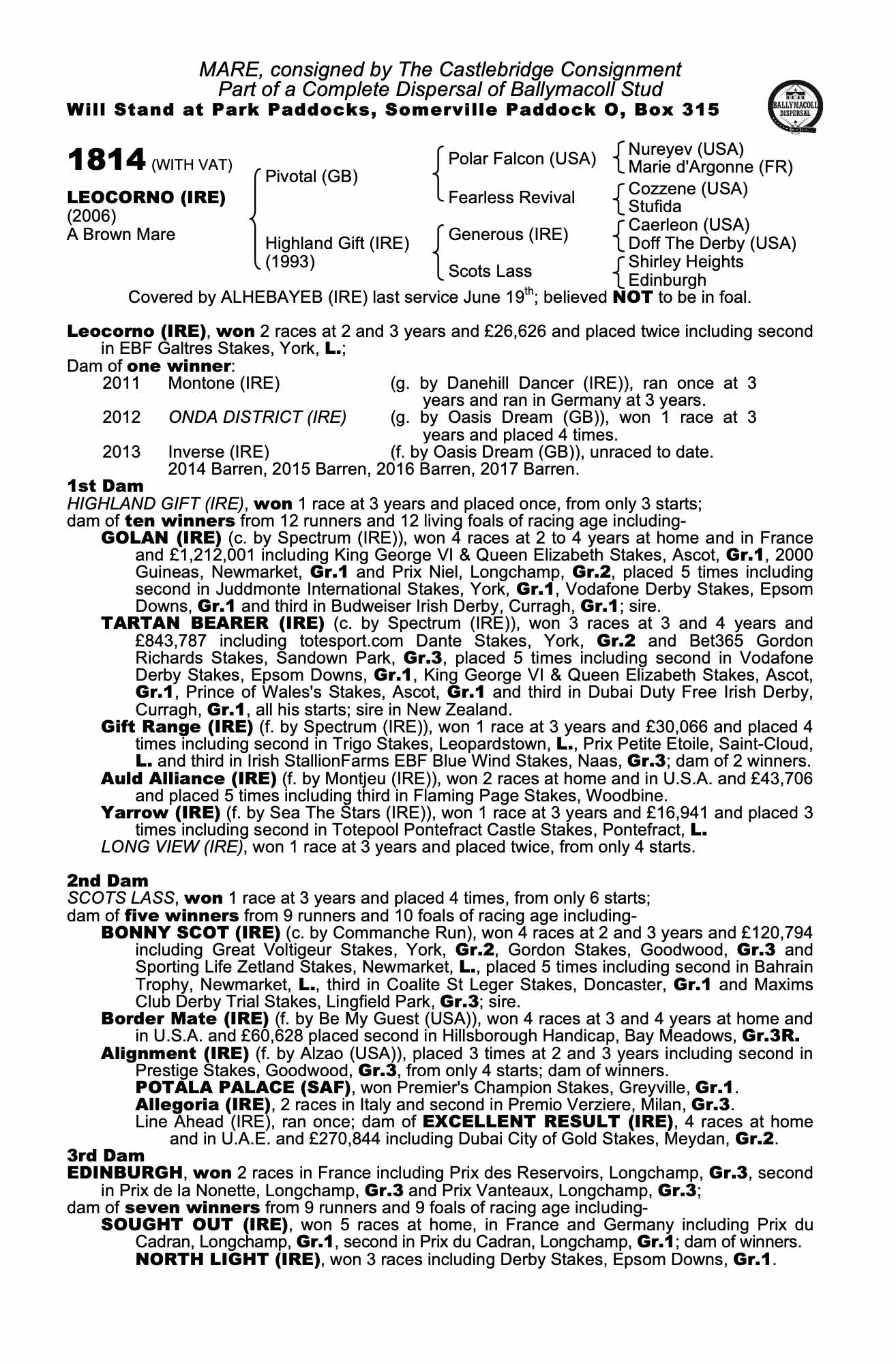 December Mare Sale 2017 lot 1844 Auld Alliance (IRE) (M. by Montjeu (IRE)), Baroda & Colbinstown Studs, Ireland=>Vendor 1,050,000 gns