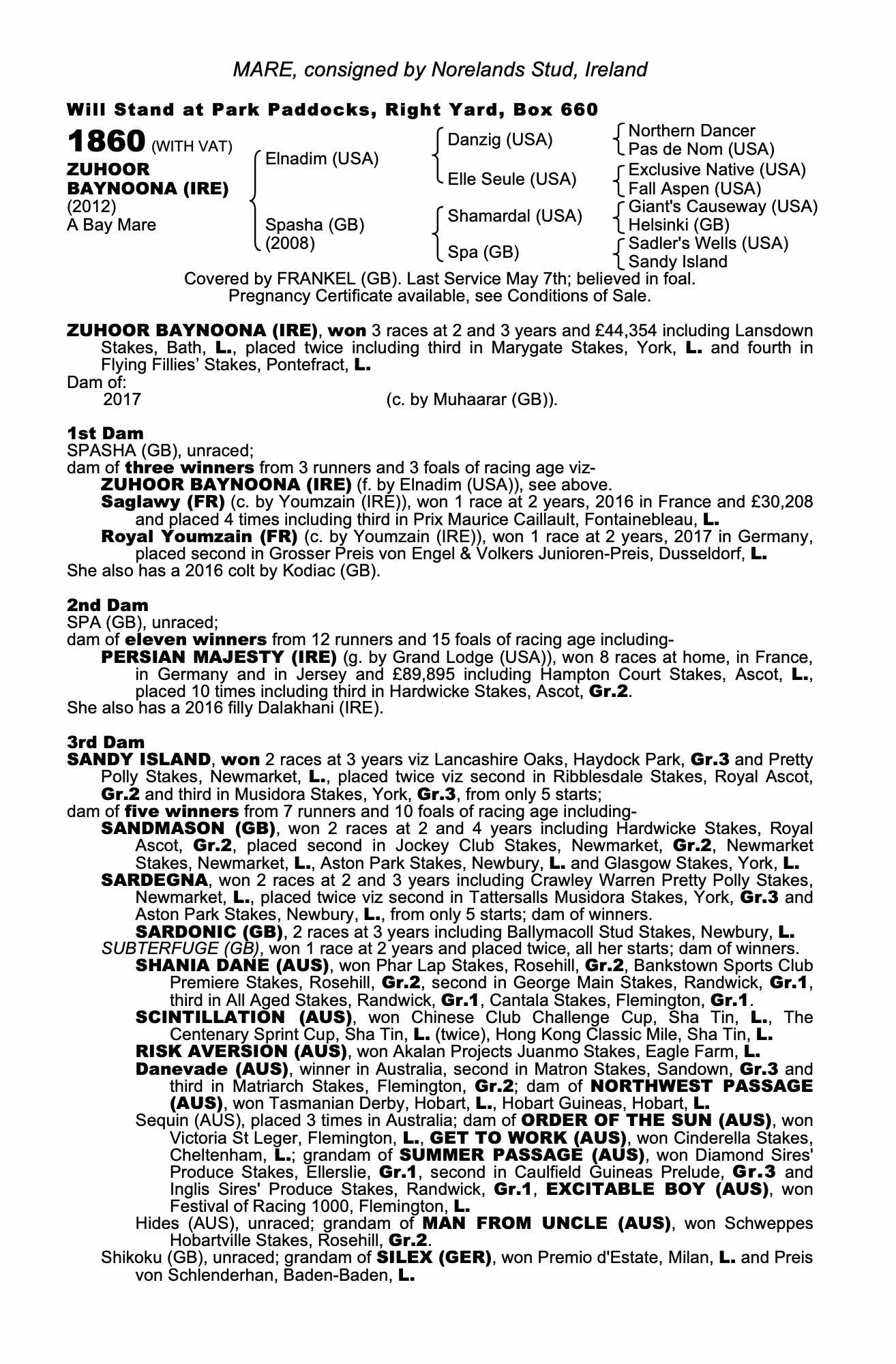 Consignor: Norelands Stud, Ireland