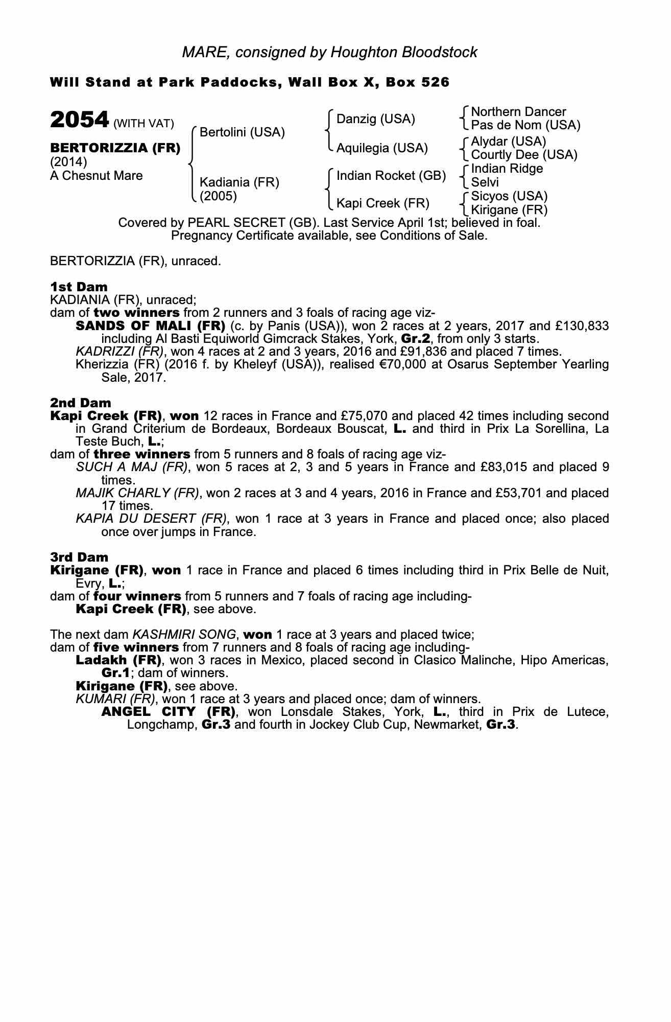 Online Sale - 11th December 2025 lot 135 A Breeding Right to Sands of Mali (FR) (H. by Panis (USA)), a Partnership=>Roalso 74,000 gns