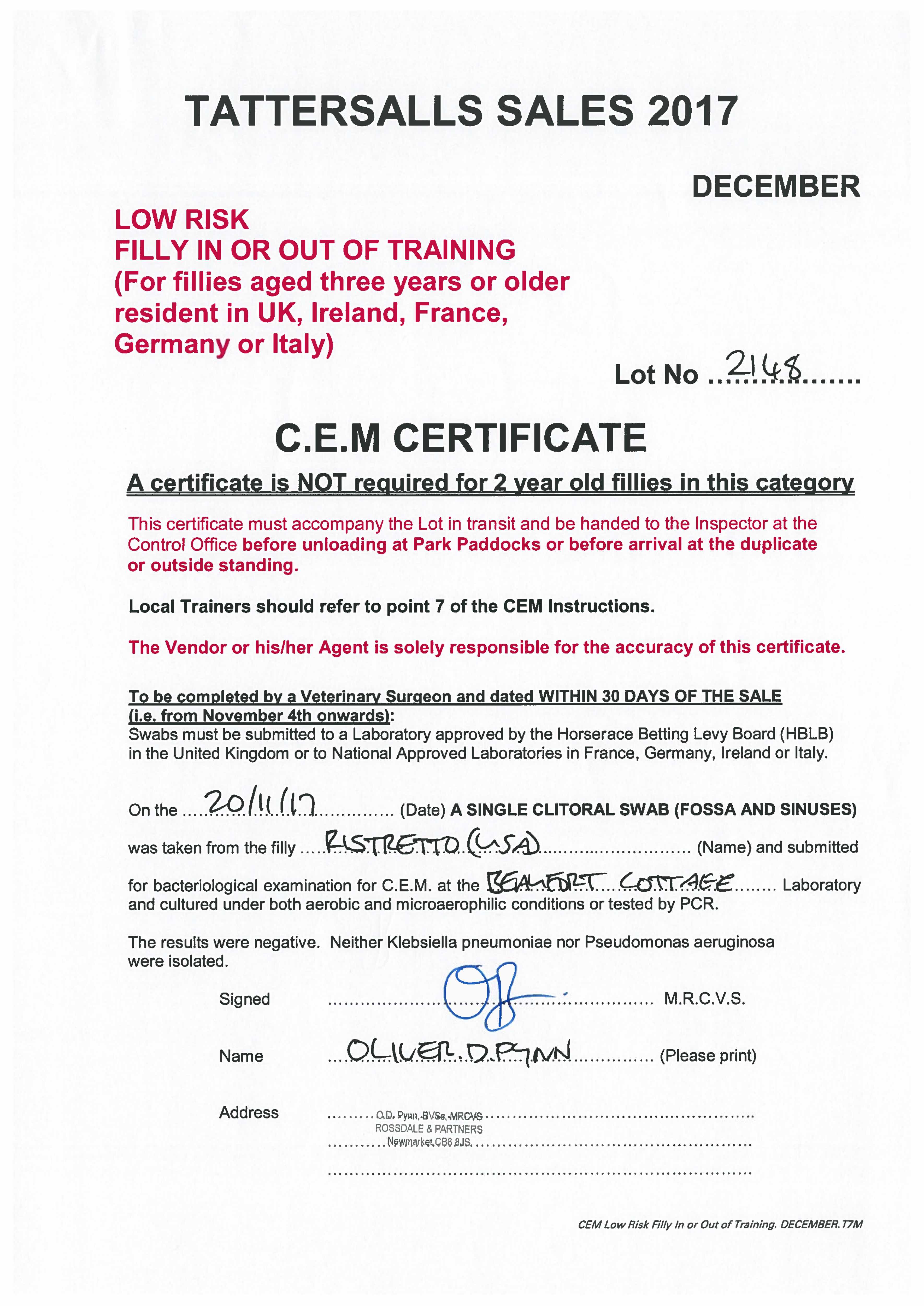 December Mare Sale 2018 lot 2100, The National Stud Ltd.=>Karate Bloodstock 52,000 gns