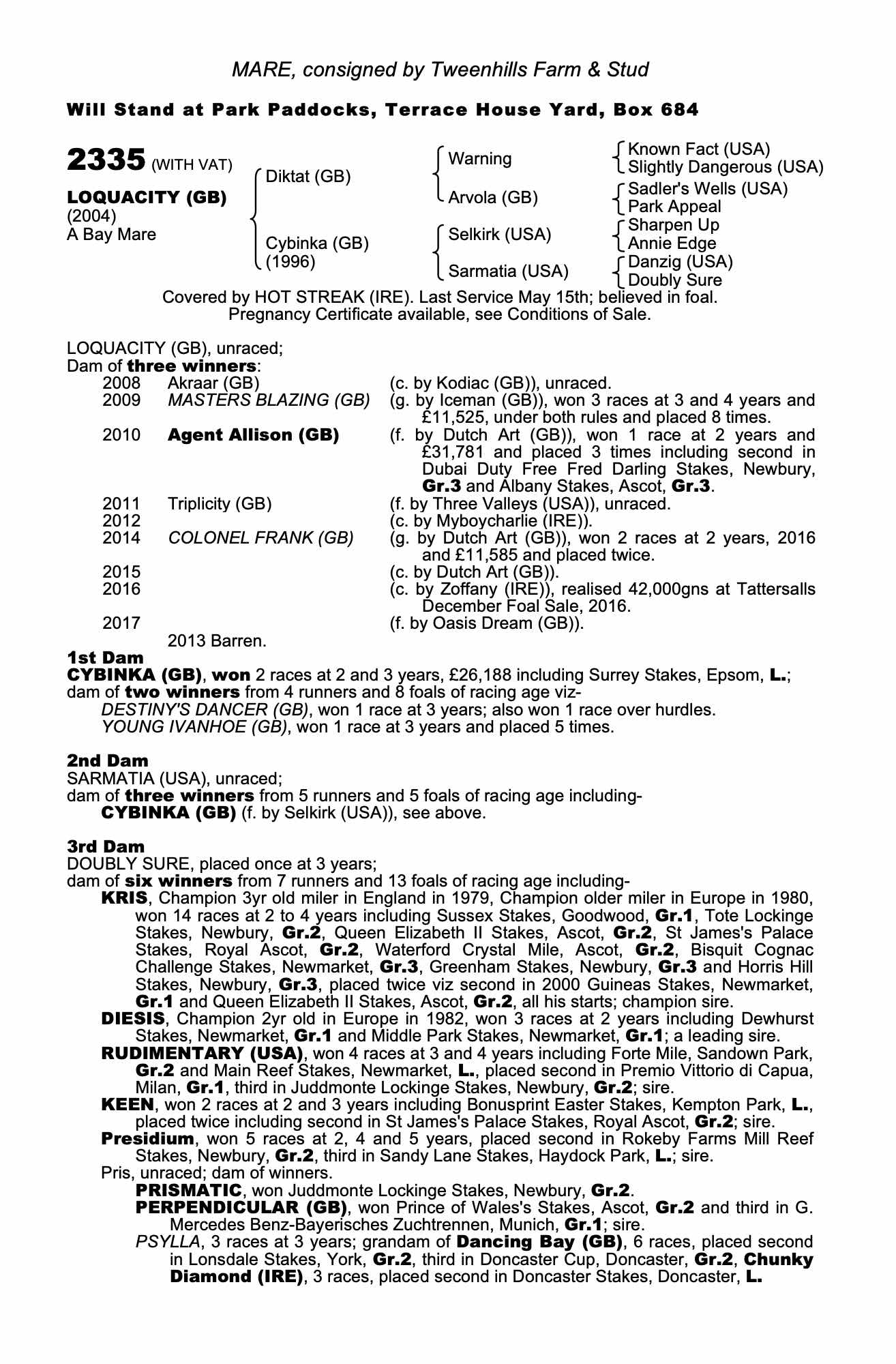 Consignor: Tweenhills Farm & Stud