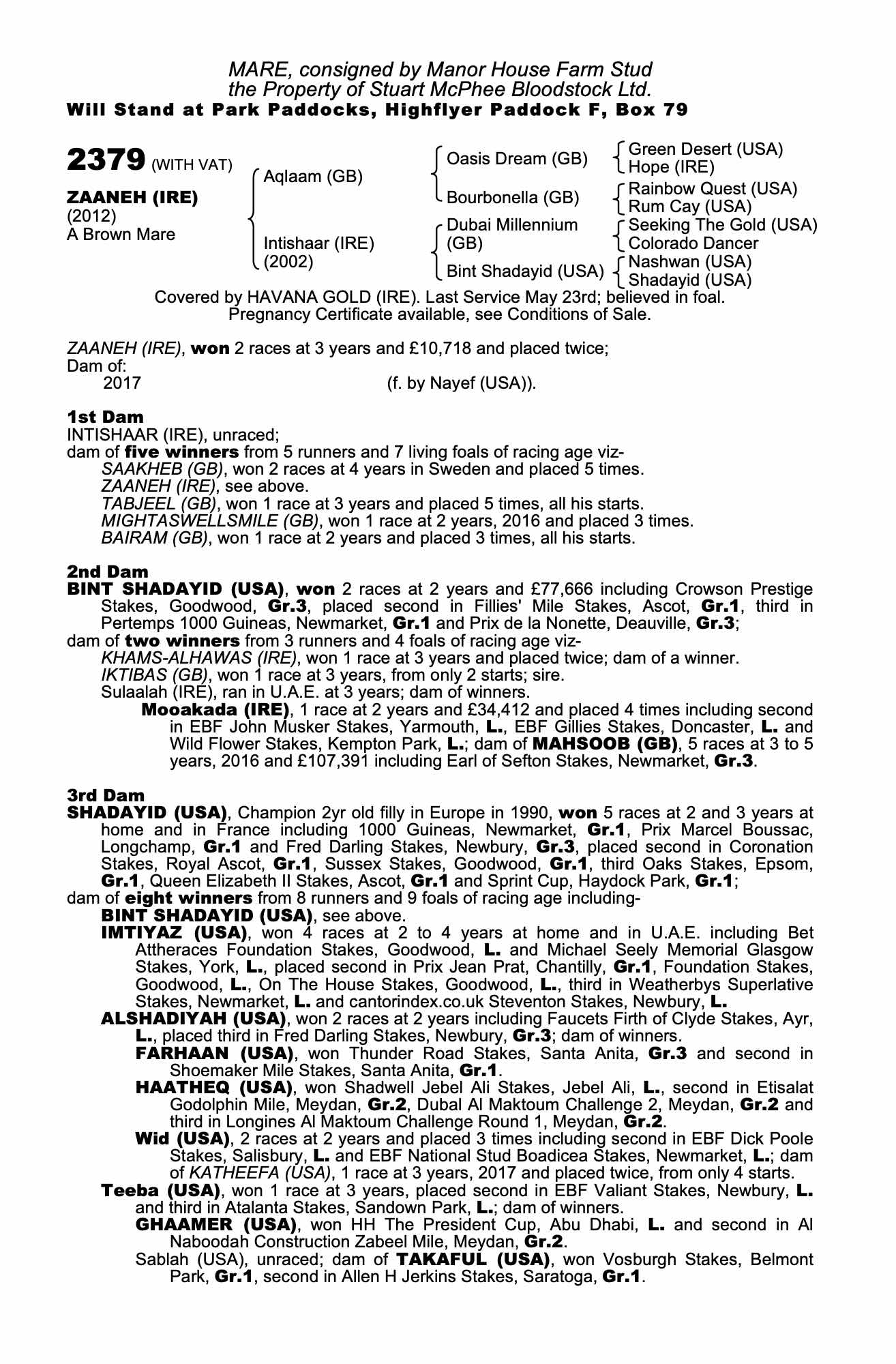 October Yearling Sale, Book 4 2018 lot 2022 F. by Nayef (USA) 2017, Manor House Farm Stud=>Lot Not Sold 1,400 gns