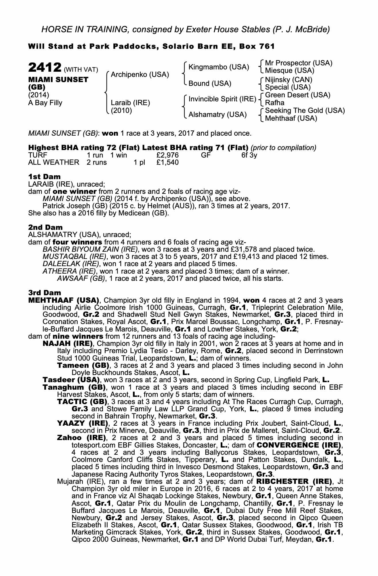 Ascot December Sale 2019 lot 4 F. by Medicean (GB) 2016, Cedar Lodge Stables (A. Carson)=>Elizabeth Boher £2,000