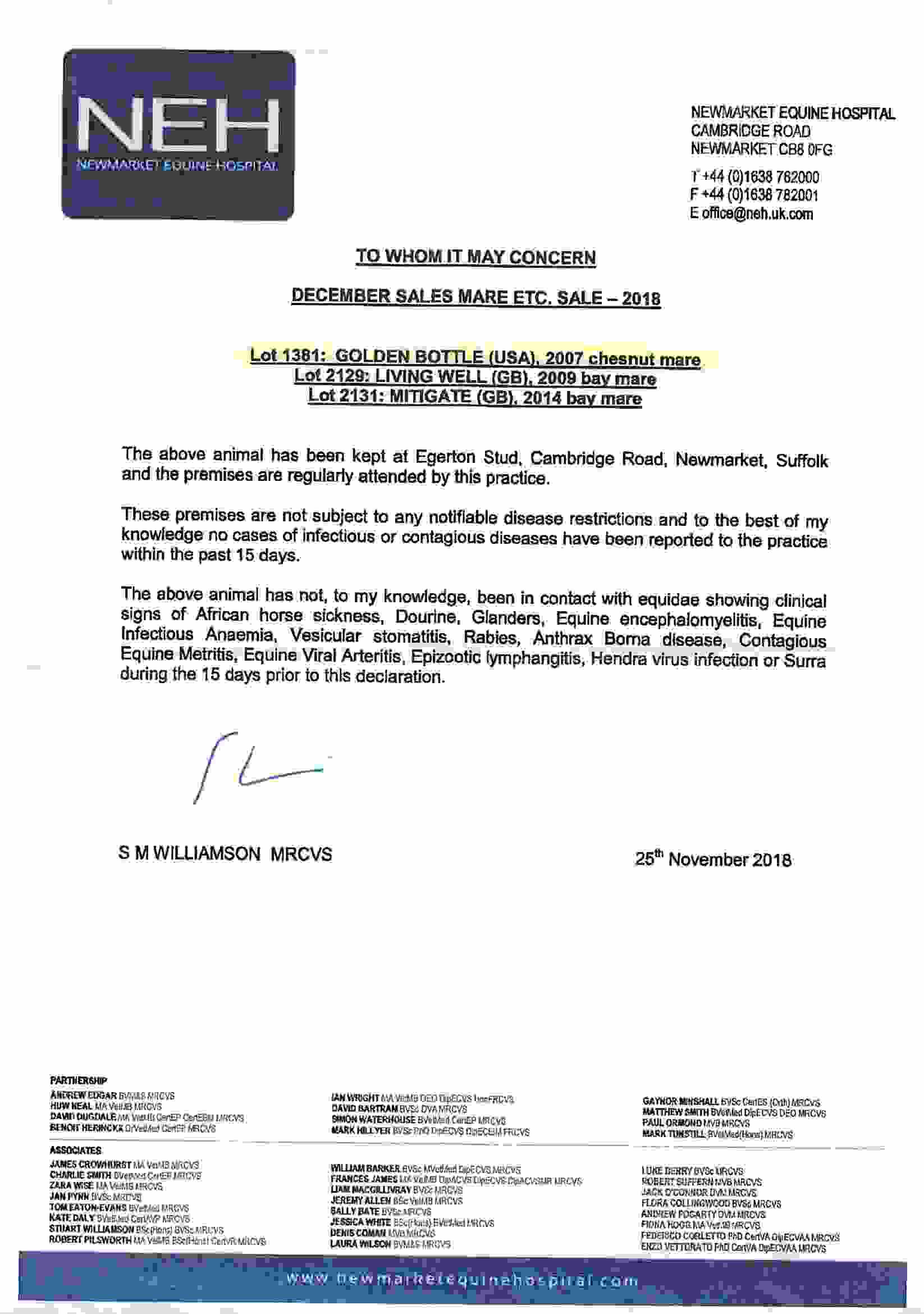 December Mare Sale 2000 lot 1725 Calming (USA) (F. by Wild Again (USA)), John Troy, Agent=>Kern/Lillingston Association 19,000 gns