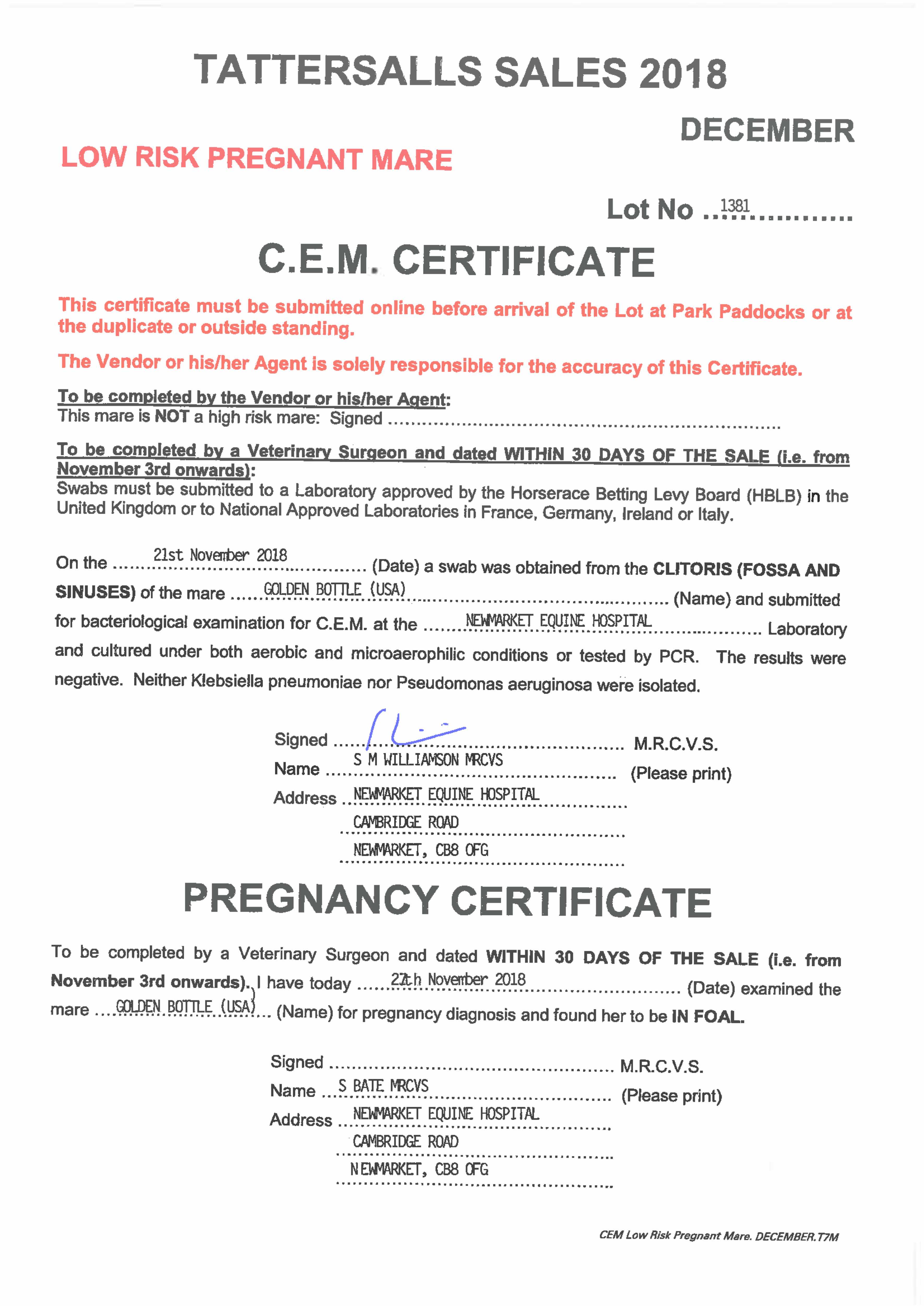 December Mare Sale 2008 lot 2287 Truly Bewitched (USA) (M. by Affirmed (USA)), John Troy, Agent=>Axel Donnerstag 25,000 gns
