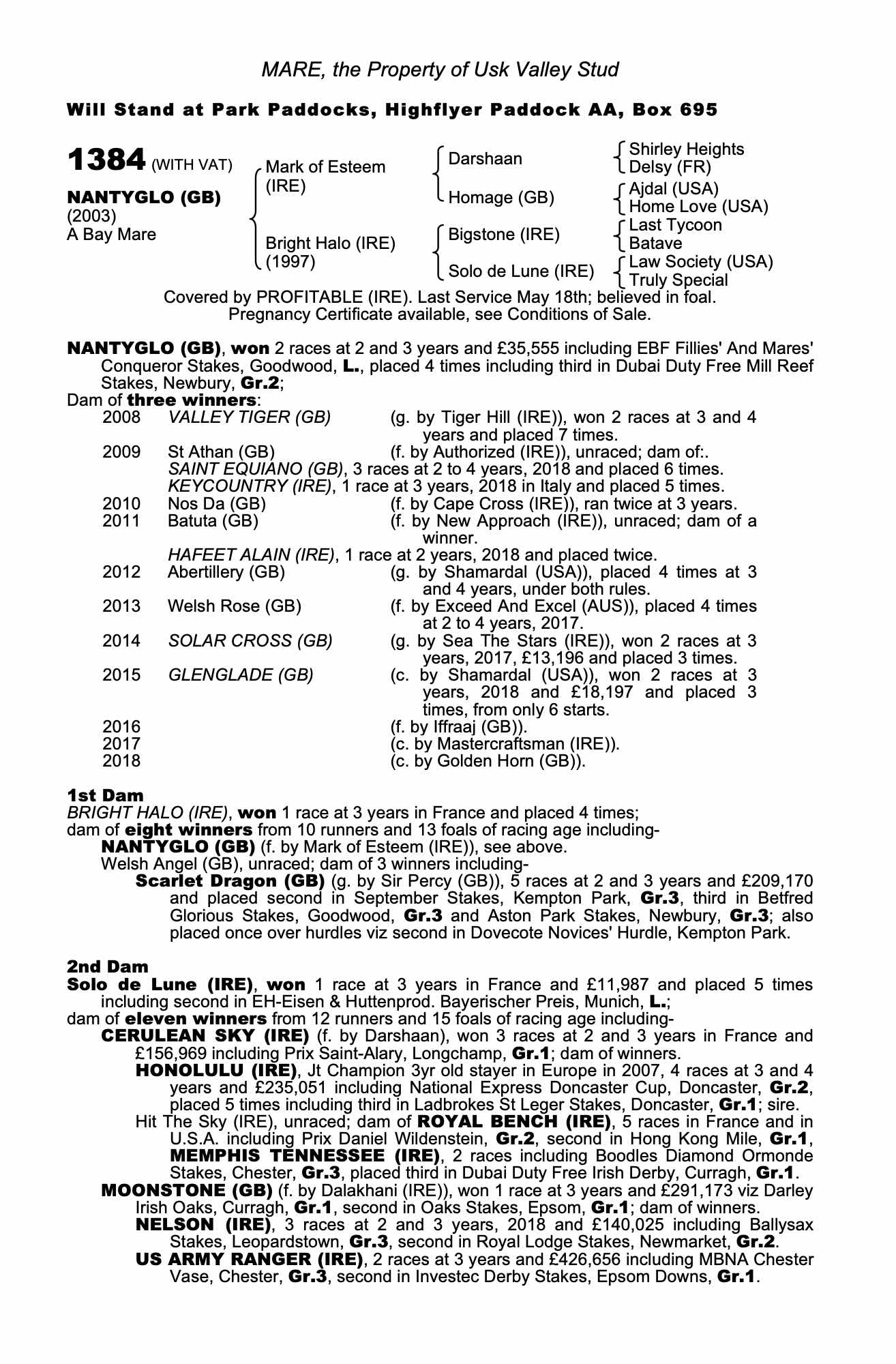 December Mare Sale 2018 lot 1387 Nos Da (GB) (M. by Cape Cross (IRE)), Usk Valley Stud=>Alderbourne Farm 800 gns