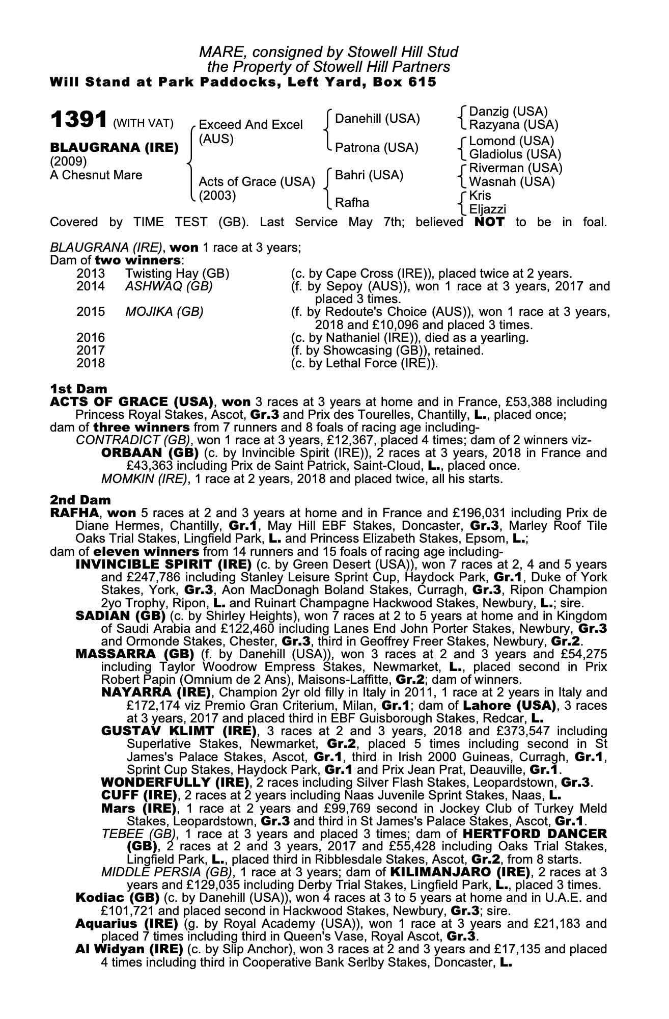 Consignor: Stowell Hill Stud
