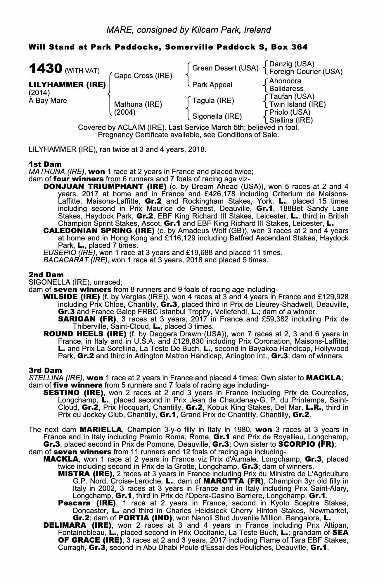 Consignor: Kilcarn Park, Ireland