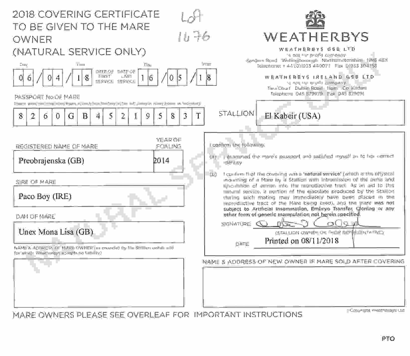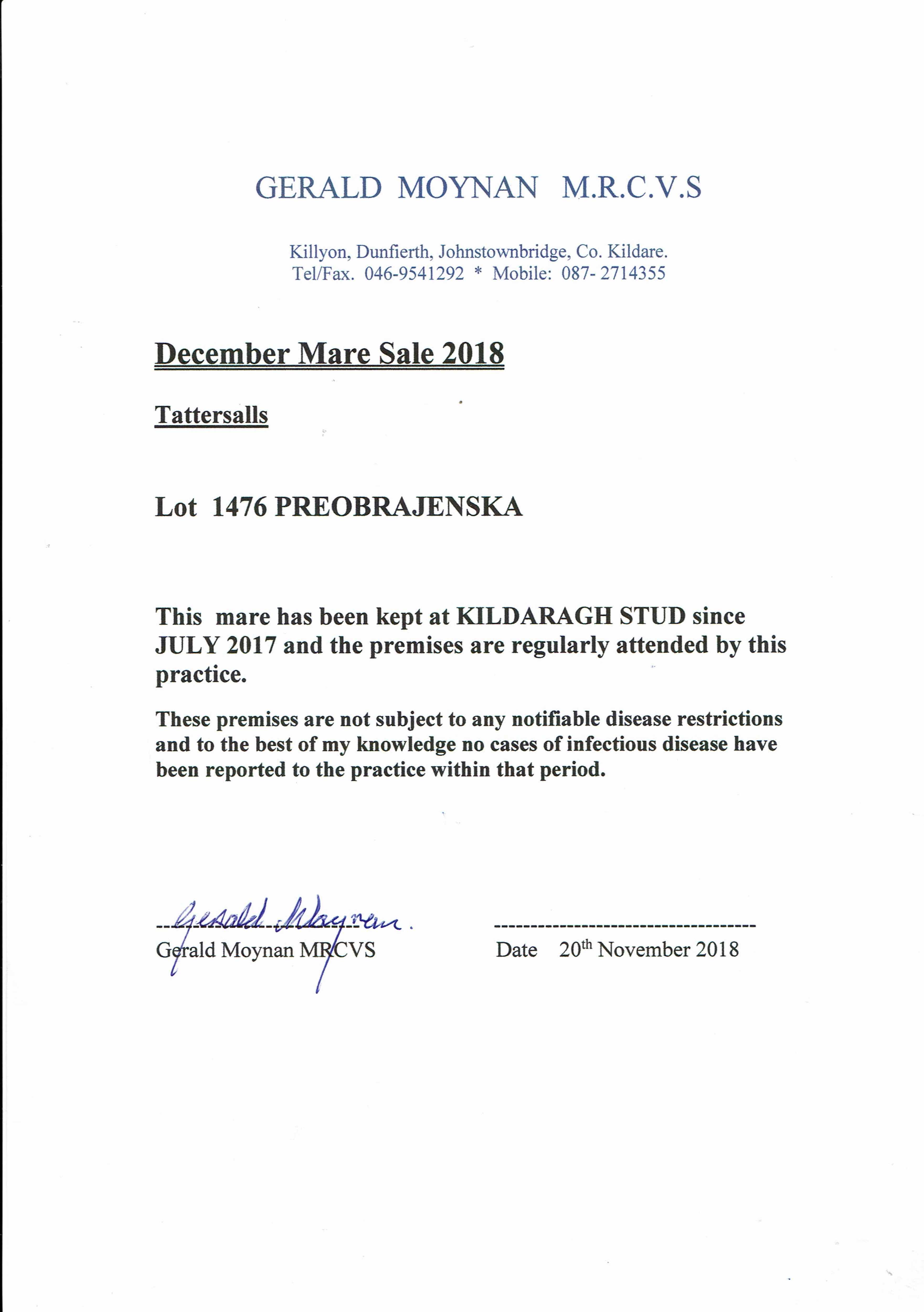 Consignor: Kildaragh Stud, Ireland (Agent)