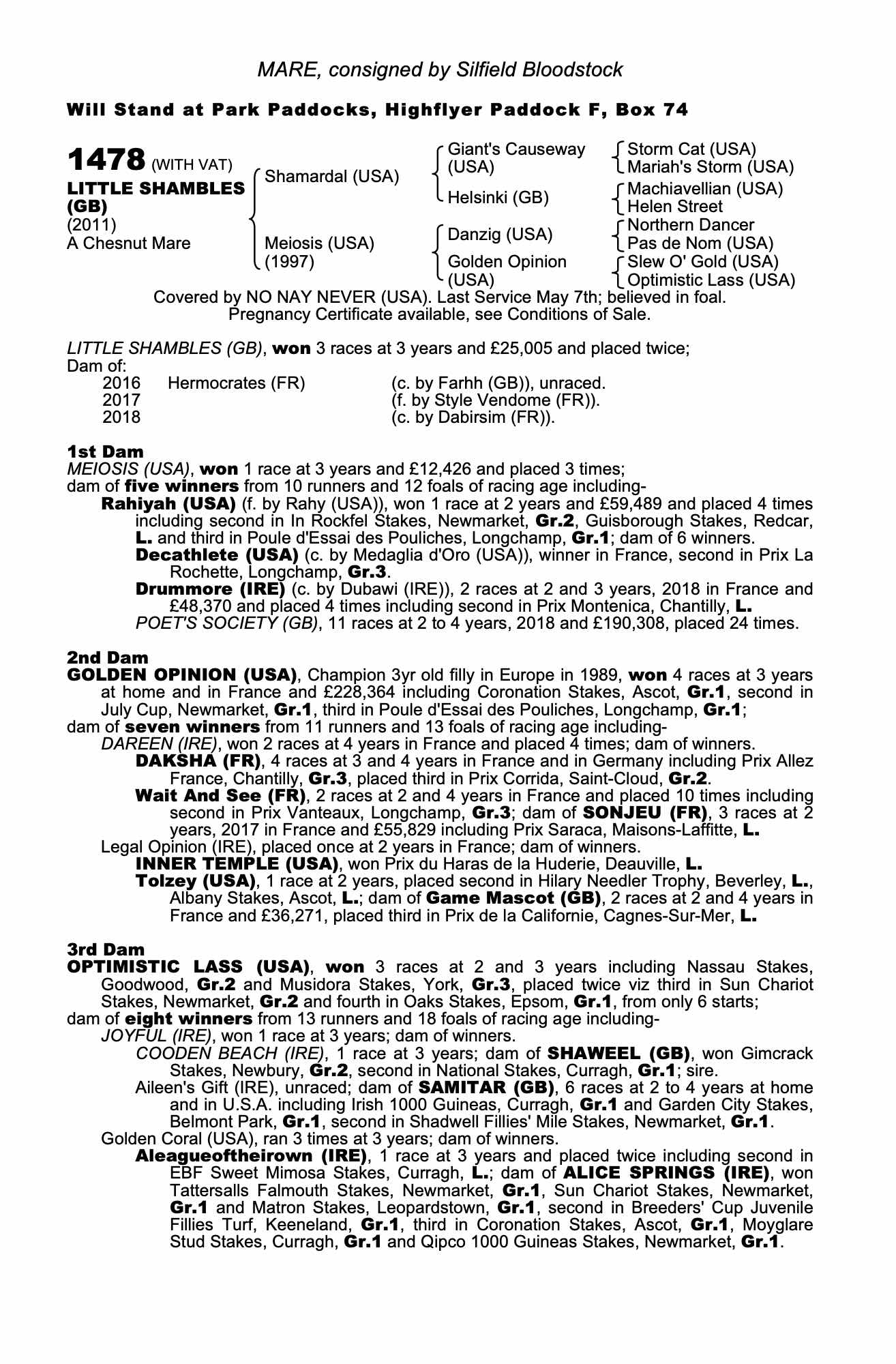 Consignor: Silfield Bloodstock
