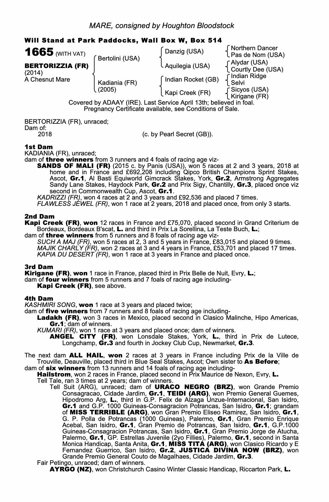 Online Sale - 11th December 2025 lot 135 A Breeding Right to Sands of Mali (FR) (H. by Panis (USA)), a Partnership=>Roalso 74,000 gns
