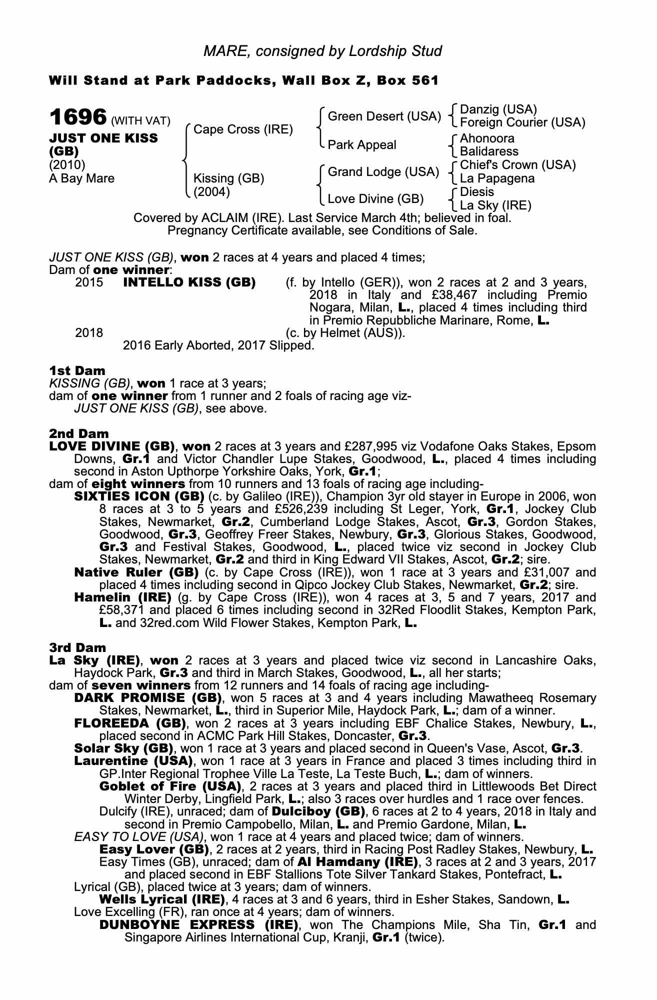 December Mare Sale 2018 lot 1908C Intello Kiss (GB) (F. by Intello (GER)), Old Buckenham Stud (Sales Division)=>Rob Speers 50,000 gns