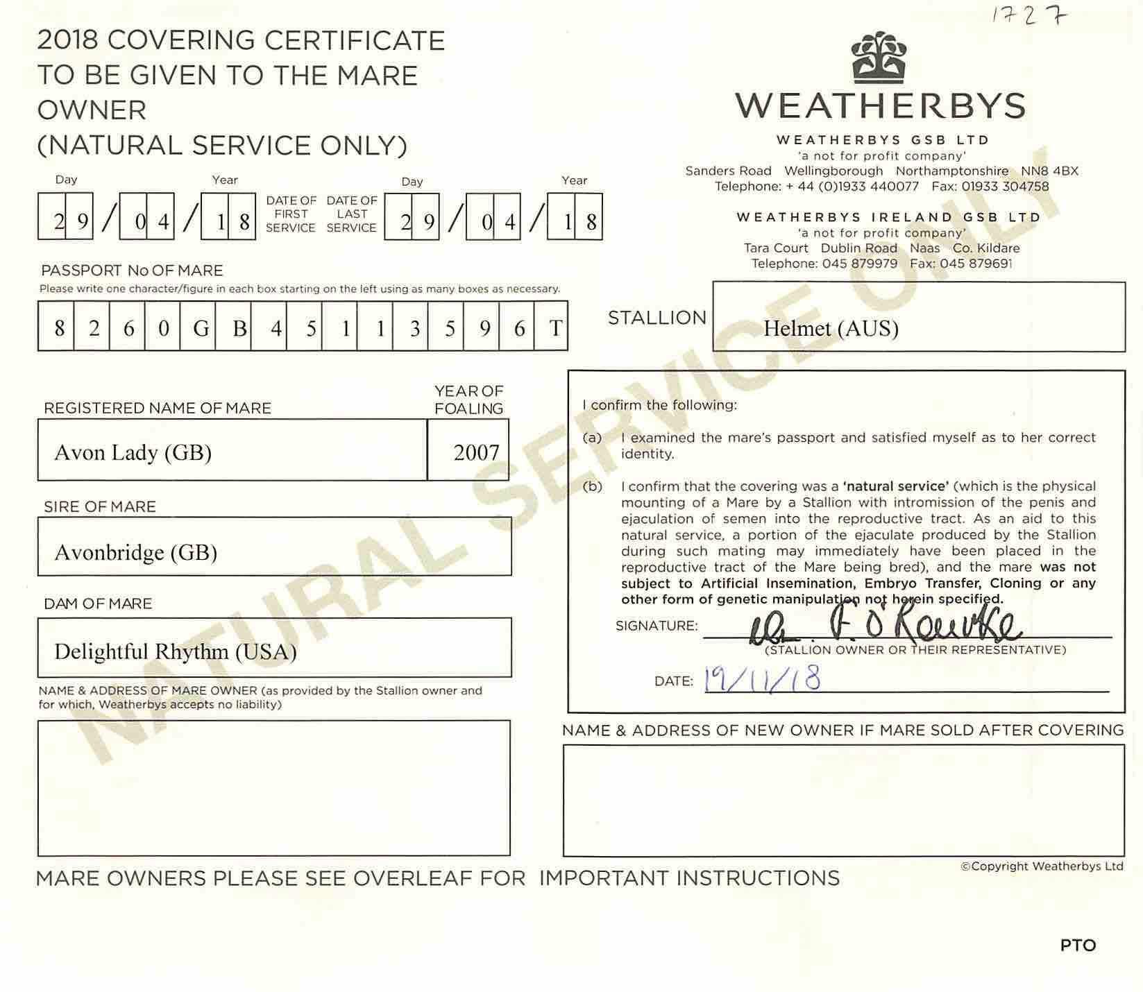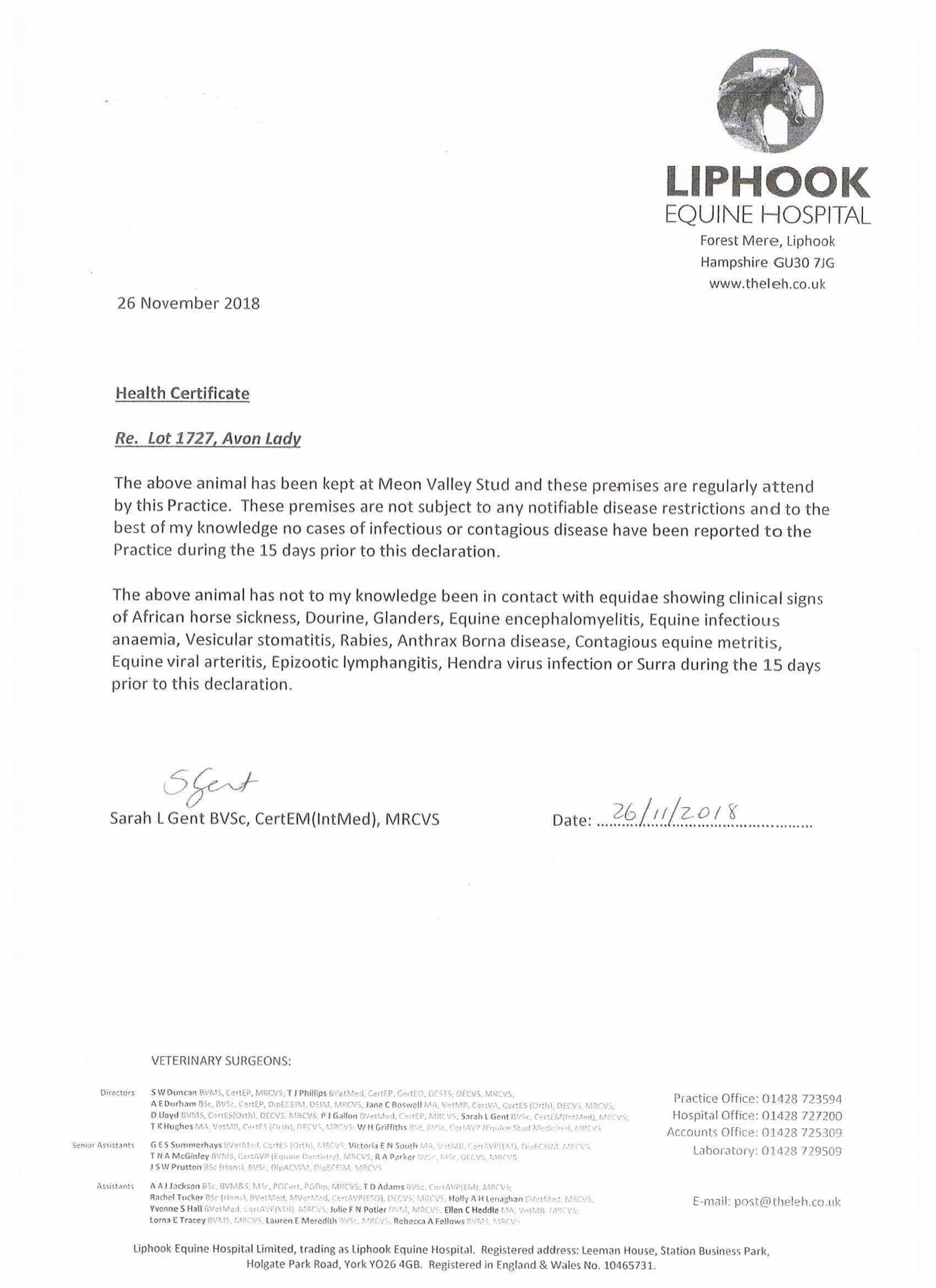 Consignor: Meon Valley Stud