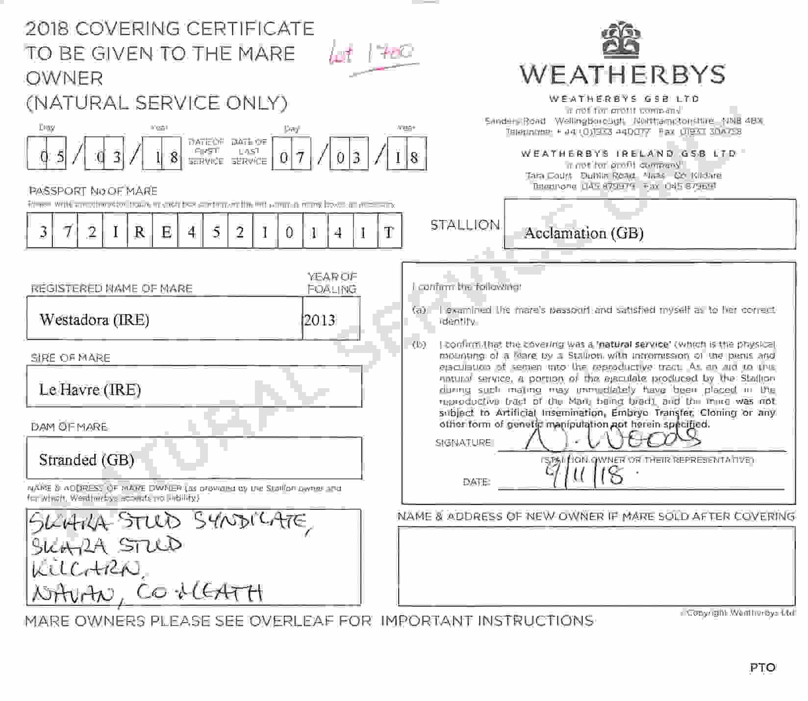 Consignor: Skara Stud, Ireland