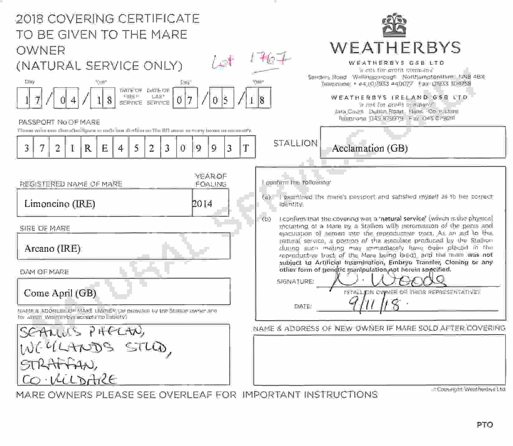 Consignor: Weylands Stud, Ireland
