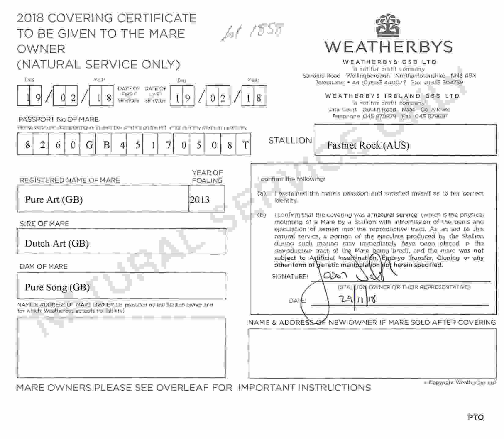 February Sale 2013 lot 169 No Song (GB) (F. by Zamindar (USA)), Park House Stables (A. Balding)=>Lot Not Sold 7,500 gns