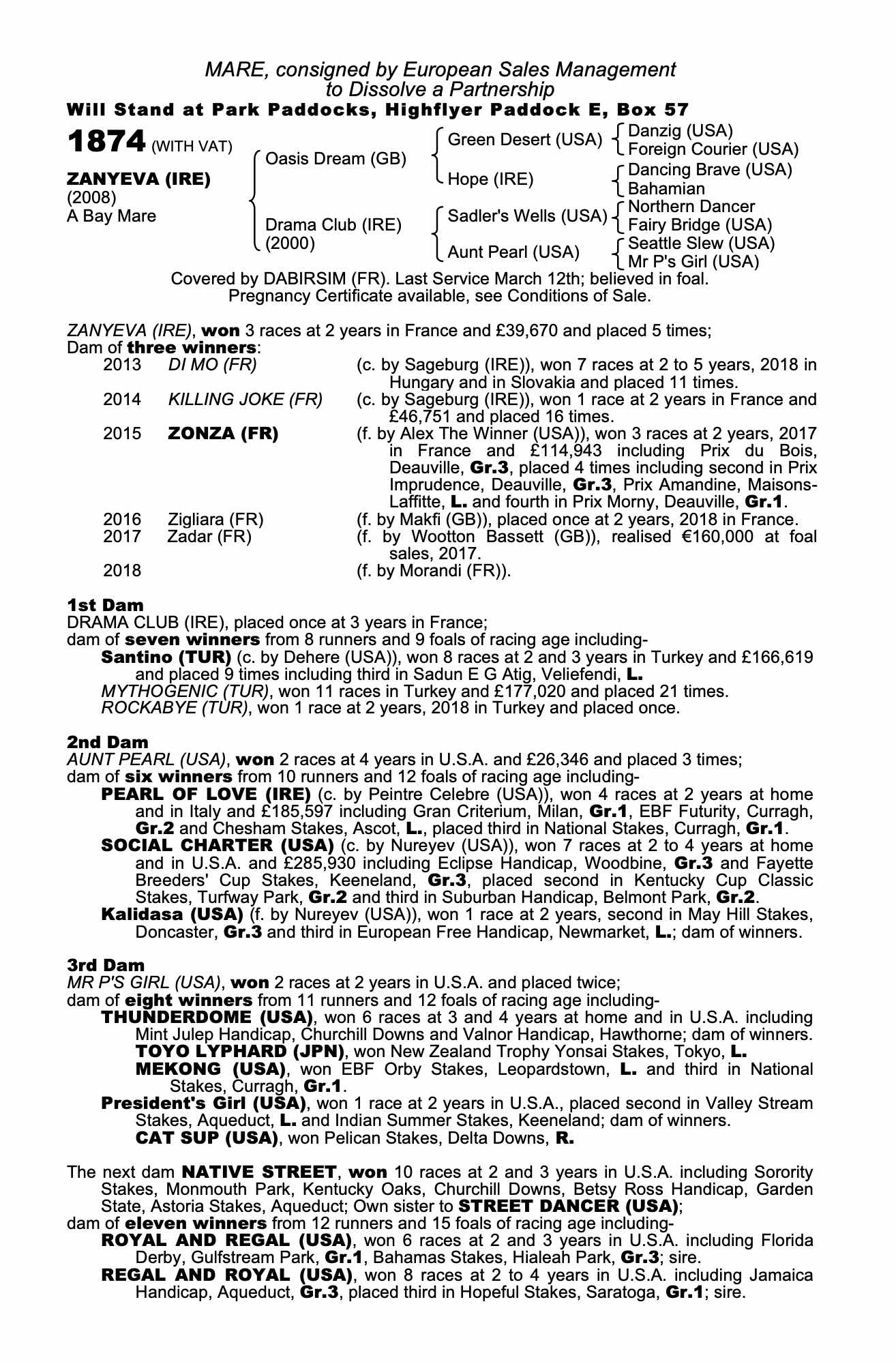 December Mare Sale 2019 lot 1799 Zonza (FR) (F. by Alex The Winner (USA)), European Sales Management=>Katsumi Yoshida 340,000 gns
