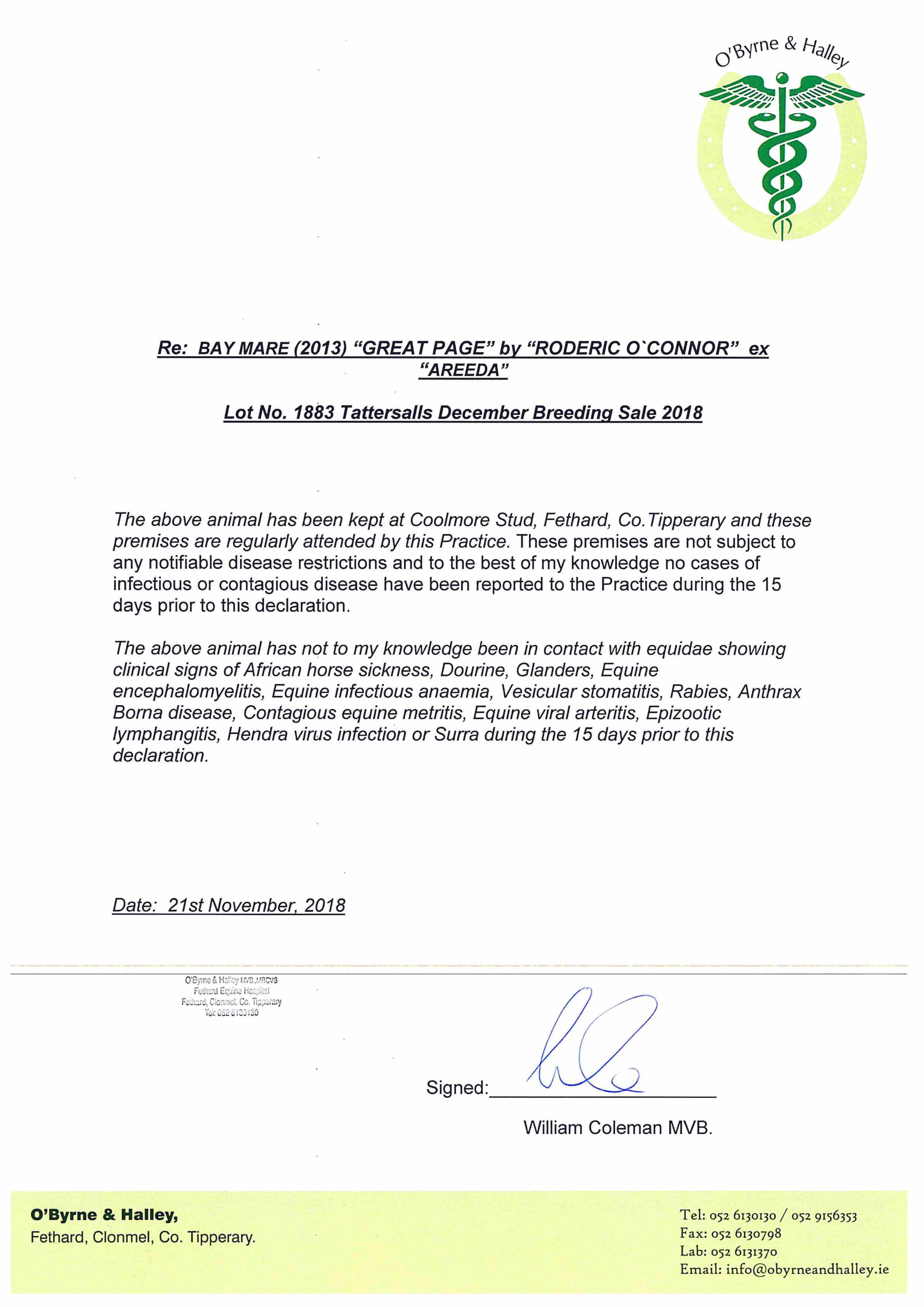 December Foal Sale 2018 lot 1005 F. by War Front (USA) 2018, The Castlebridge Consignment=>Justin Casse Agent 185,000 gns