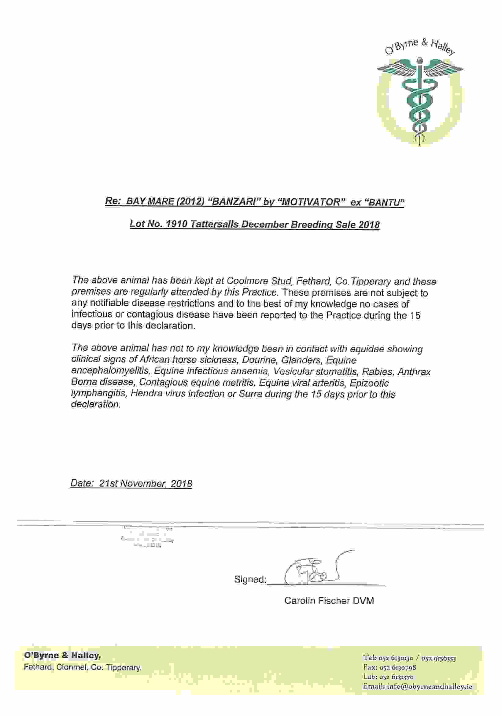Consignor: Baroda & Colbinstown Studs, Ireland