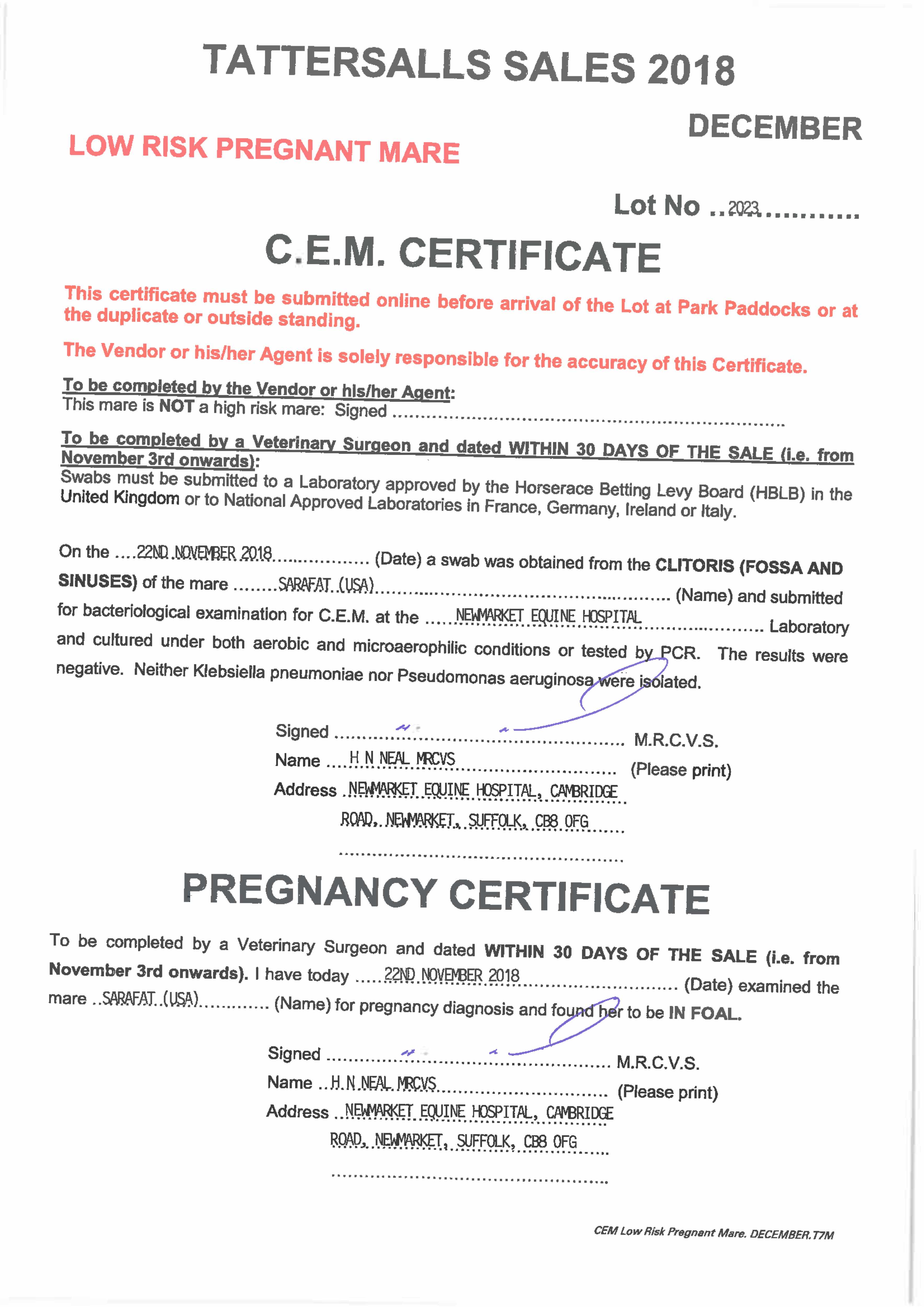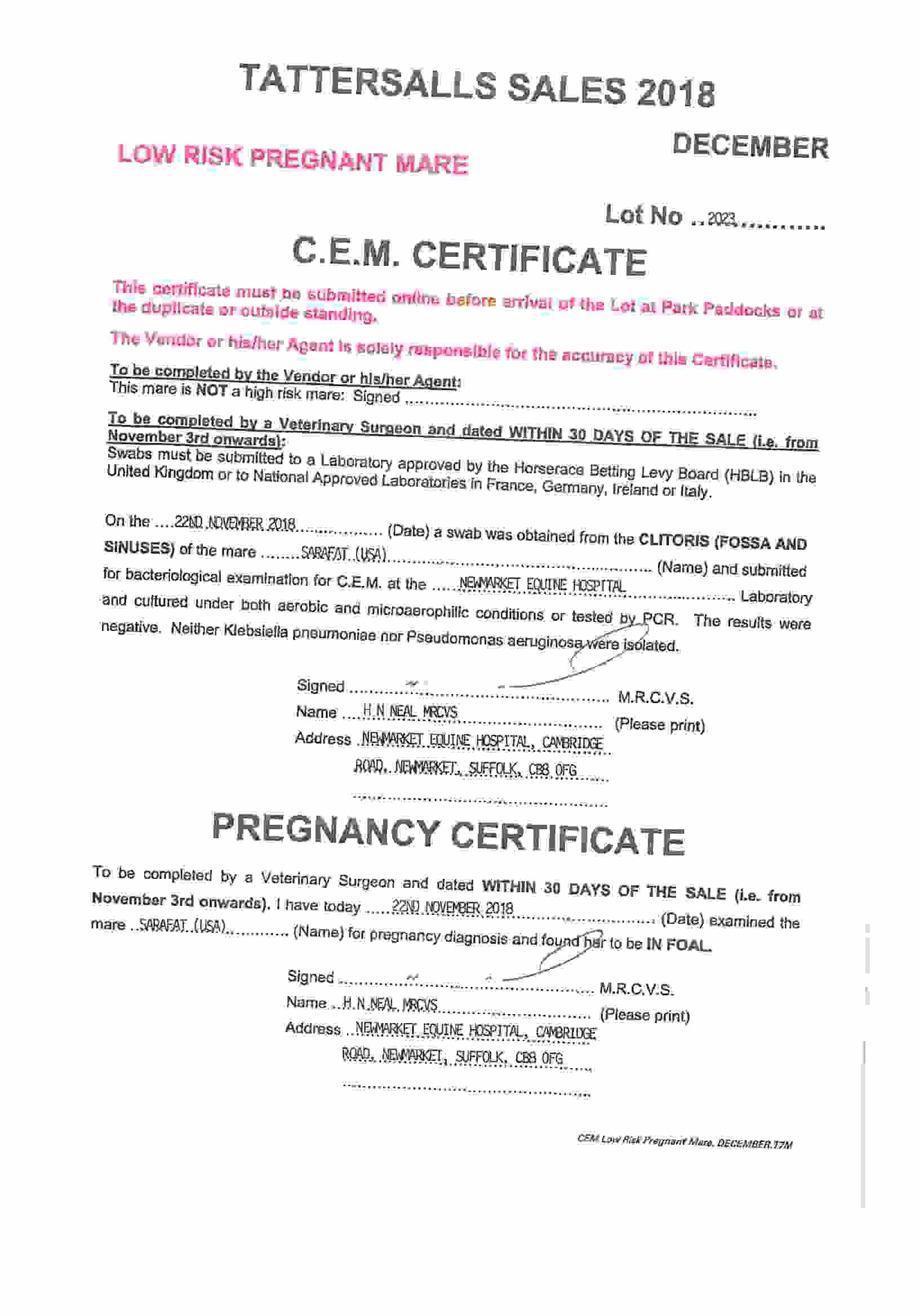 Electronic covering cert at Weatherbys